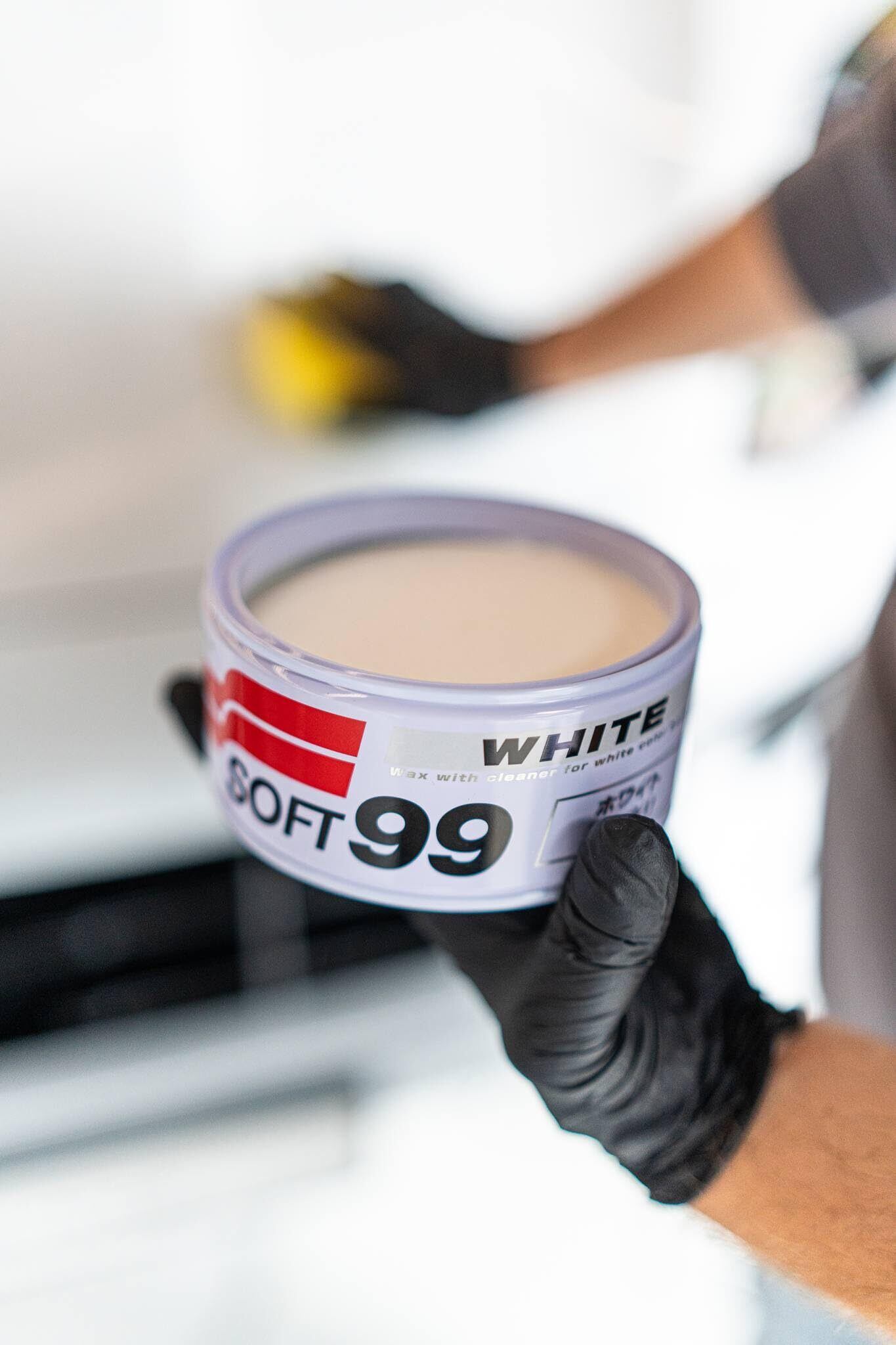 ソフト99(SOFT99) ワックス WAX ニューソフト99 ホワイトハンネリ 350g 自動車塗膜の保護・艶出し用 スポンジ 00020