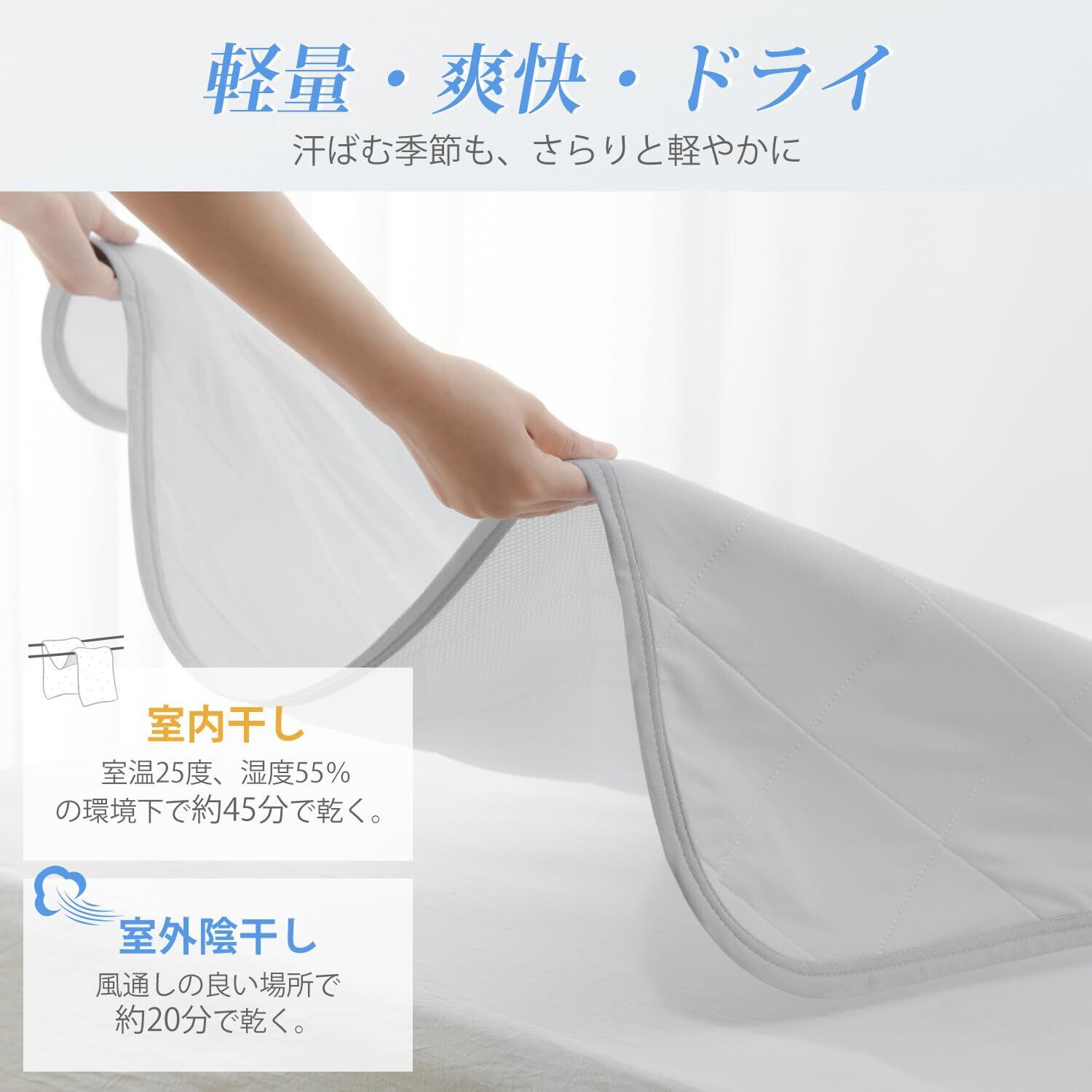 「毎日使いやすい設計」1. 四隅にゴムバンド付きで、ズレにくく安定感抜群。2. 抗菌防臭加工で、汗をかいてもニオイが気になりにくい。3. 洗濯機で丸洗いOK、毎日でも清潔に使える。4. 速乾仕様で、お手入れ簡単。