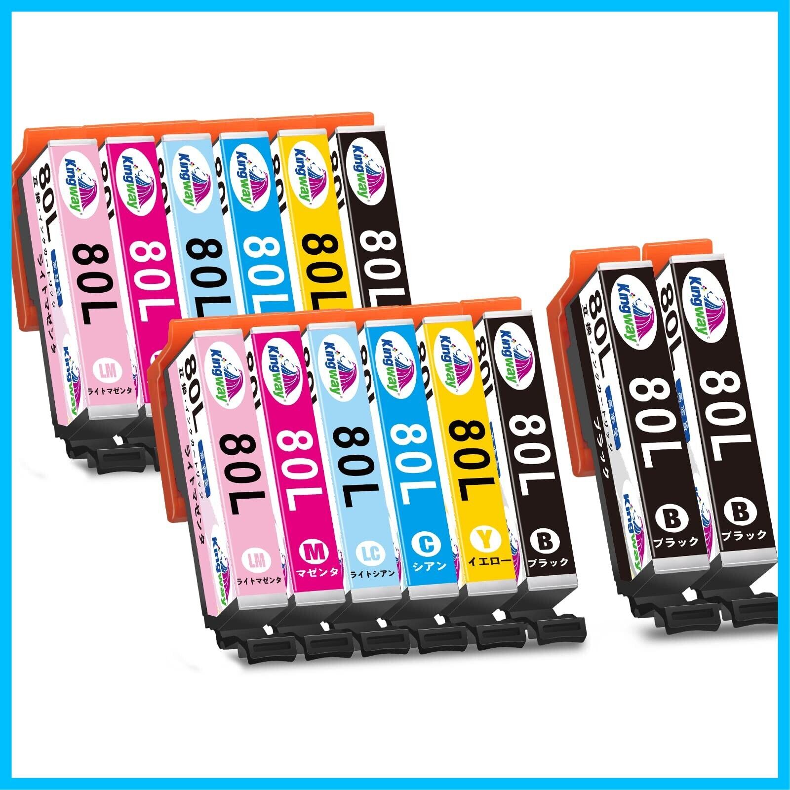 パッケージ内容:エプソン対応 Epson用 インクカートリッジ 80 IC6CL80L 互換インクカートリッジ とうもろこし インク 6色セット×2 + 黒2本、合計14本の増量セットです