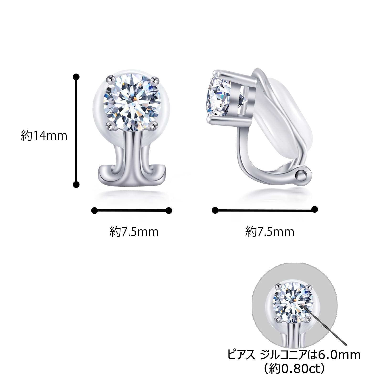 商品の詳細:2個入り。イヤリングサイズ:(縦)14mm*(横)7.5mm。素材:ジルコニアは6.0mm(約0.80ct/粒)、アレルギー対応の材質。付属品:精美な包装ケース、専用クロス、ベロア調ポーチ
