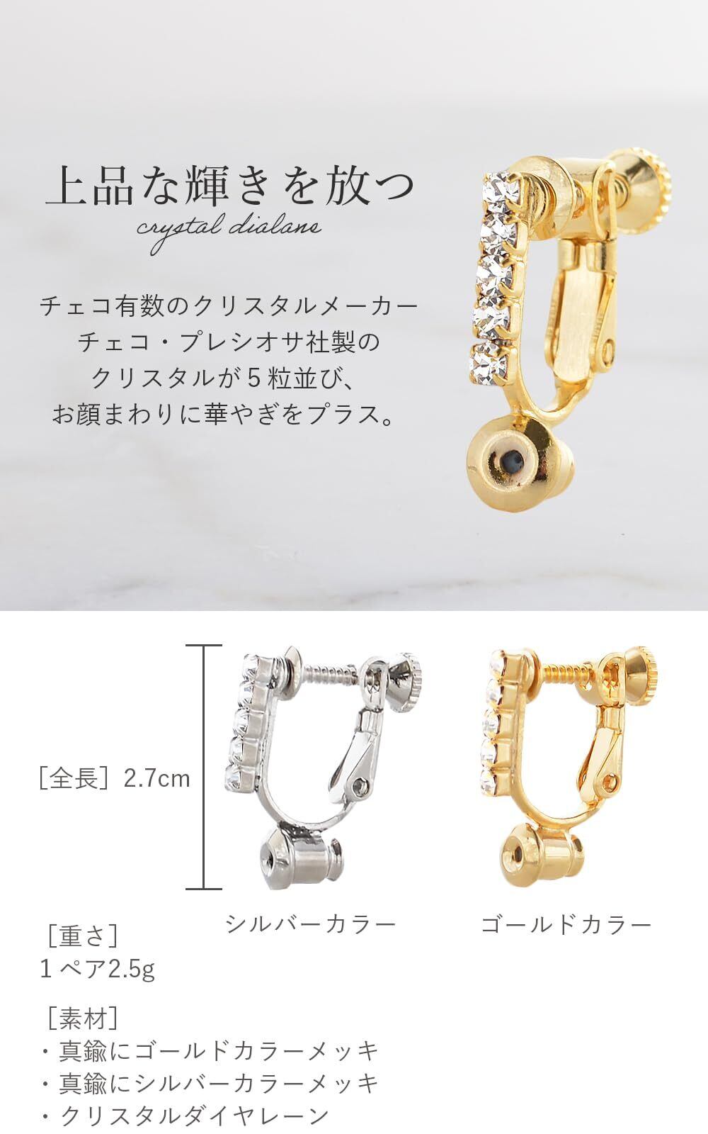イヤリングコンバーター ネジ式 ゴールド シルバー 痛くない クリスタルダイヤレーン レディース 日本製 (シルバー)