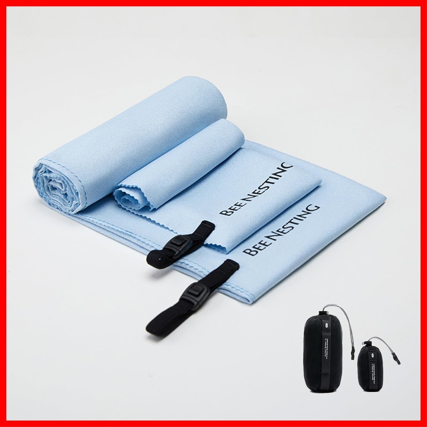 BeeNesting 超軽量 速乾タオル2枚セット 超吸水 抗菌 防臭 スポーツタオル く折りたためる コンパクト 収納袋付き旅行タオル 水泳 アウトドア 登山用 マイクロファイバータオルセット(S+XL、ブルー)