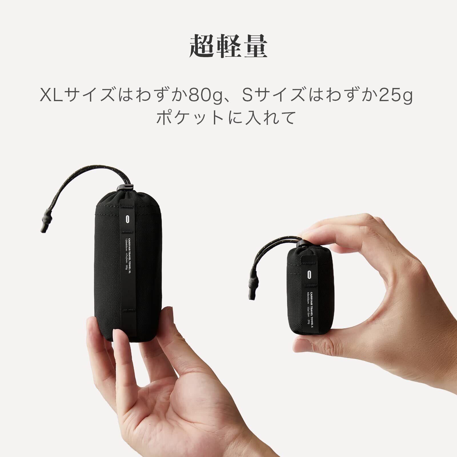 コンパクト & 超軽量 - UL超軽量速乾タオルは、基本重量を減らしてスペースを節約するように設計された、超軽量のポケット サイズのパワーメッシュ収納袋に収納できます。 持ち運び用のカラビナを備えたメッシュサックハイパロンループでバッグやバックパックに取り付けます。