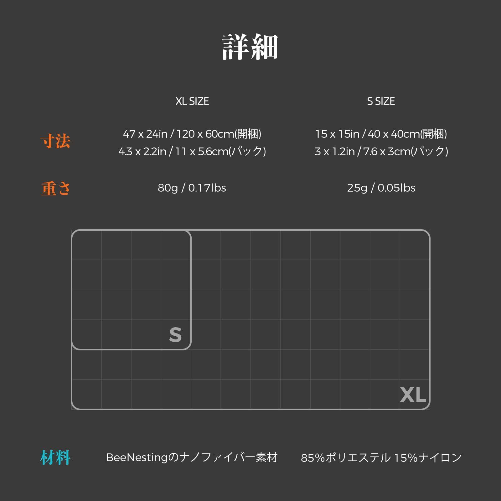 旅行便利グッズ:超軽量 速乾タオル XL&S 2パックは、わずか100gで、標準タオル、シャワータオル、マルチパーパスタオルとしてほとんどの種類の旅行に使用できるXLタオル(サイズ:120x60cm パックサイズ:7.3x4x11cm)と、顔タオルとして完璧なSタオル(サイズ:40x40cm パックサイズ:4.3x2.7x6.5cm)を含みます。アウトドア活動、ハイキング、キャンプ旅行に最適です。