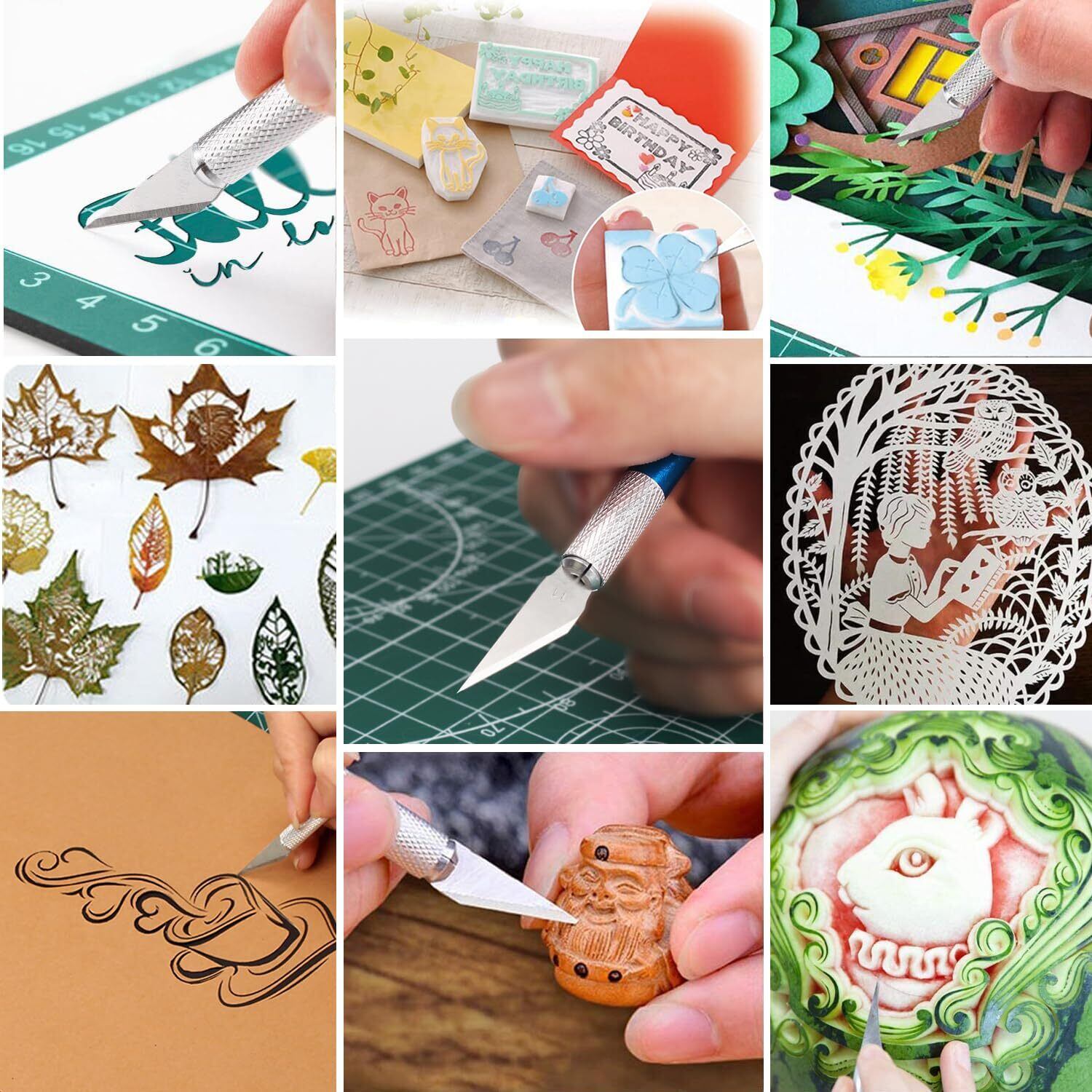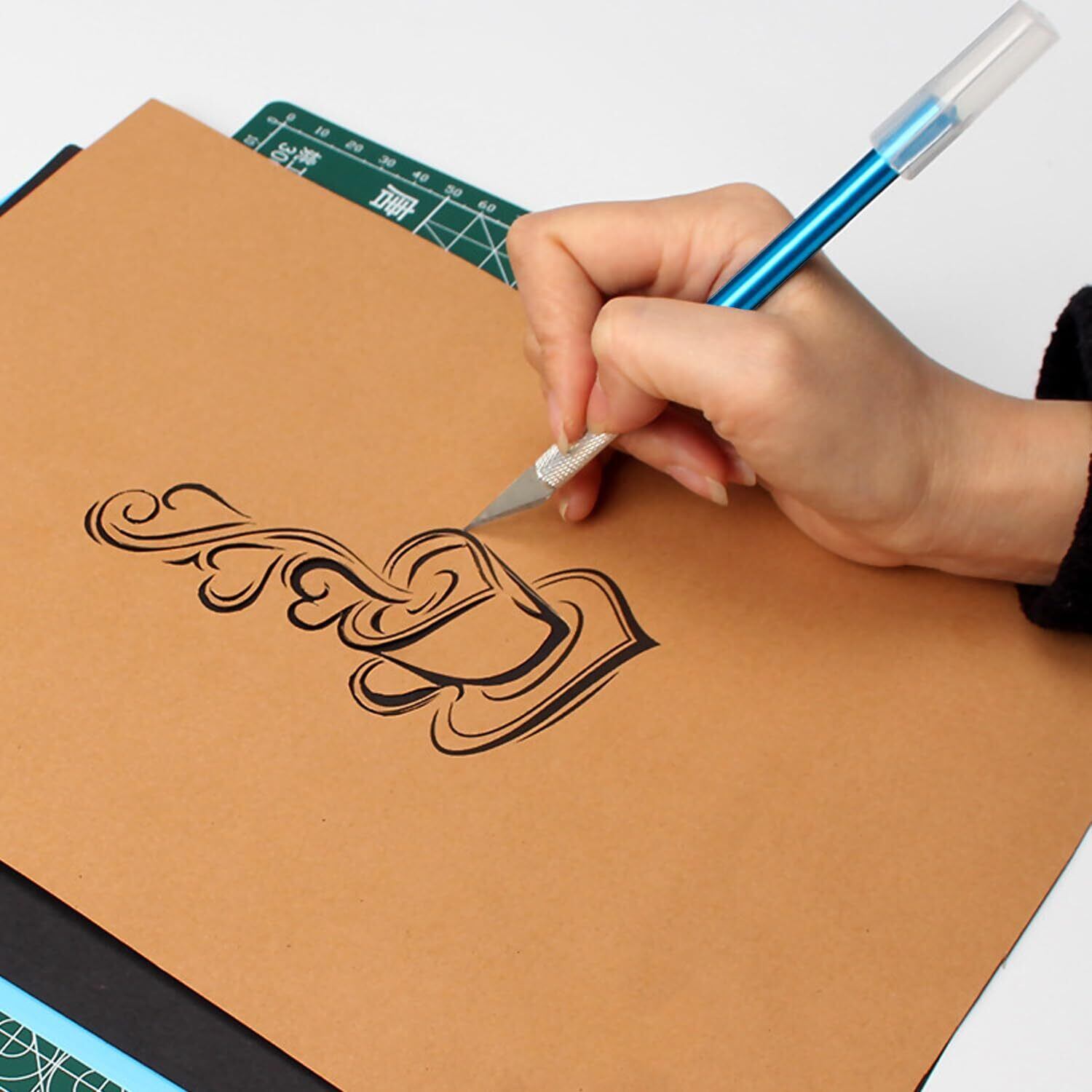【シャープの替え刃】鋭い刃は細かい線を簡単に作成でき、DIY可能にします。私たちのクラフトナイフは、紙、プラスチック、フィルム、段ボール、薄い金属や布などに最適なカッターです。紙を切ってもシンプルで、ゴム、壁紙、ビニールラップフィルムなどをカットするなど、手作業やDIYのアートワークにも完璧です!
