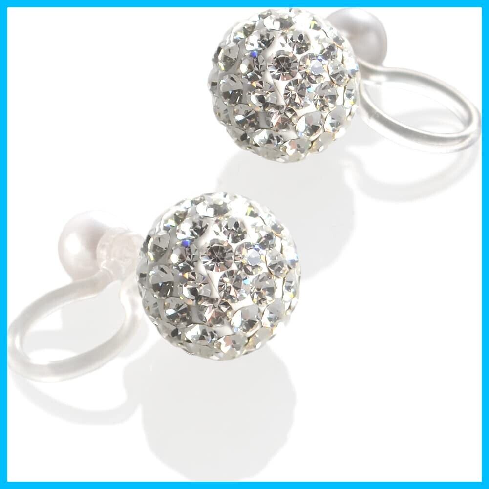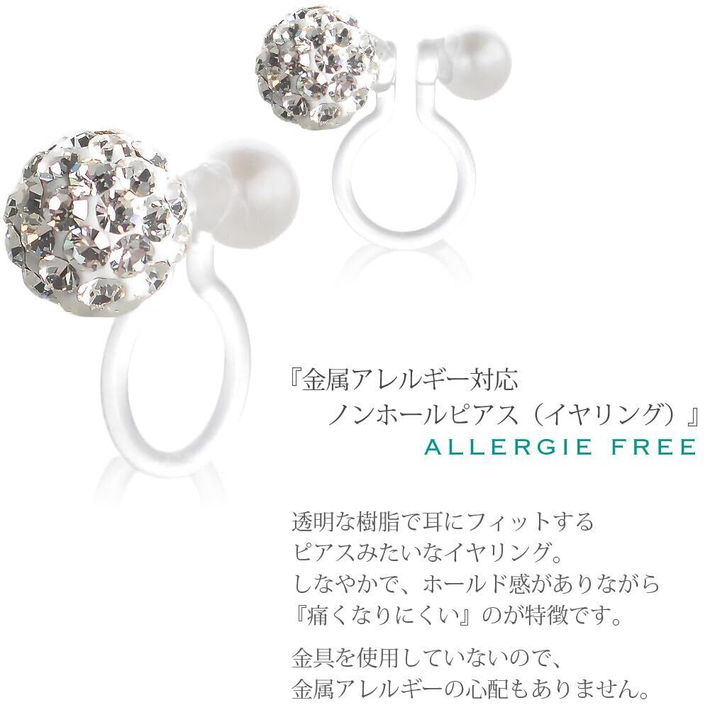 金属アレルギー対応 8mmパヴェボール 樹脂 ノンホールピアス レディース ピアス風 イヤリング 痛くない シンプル おしゃれ 日本製 (8mm)