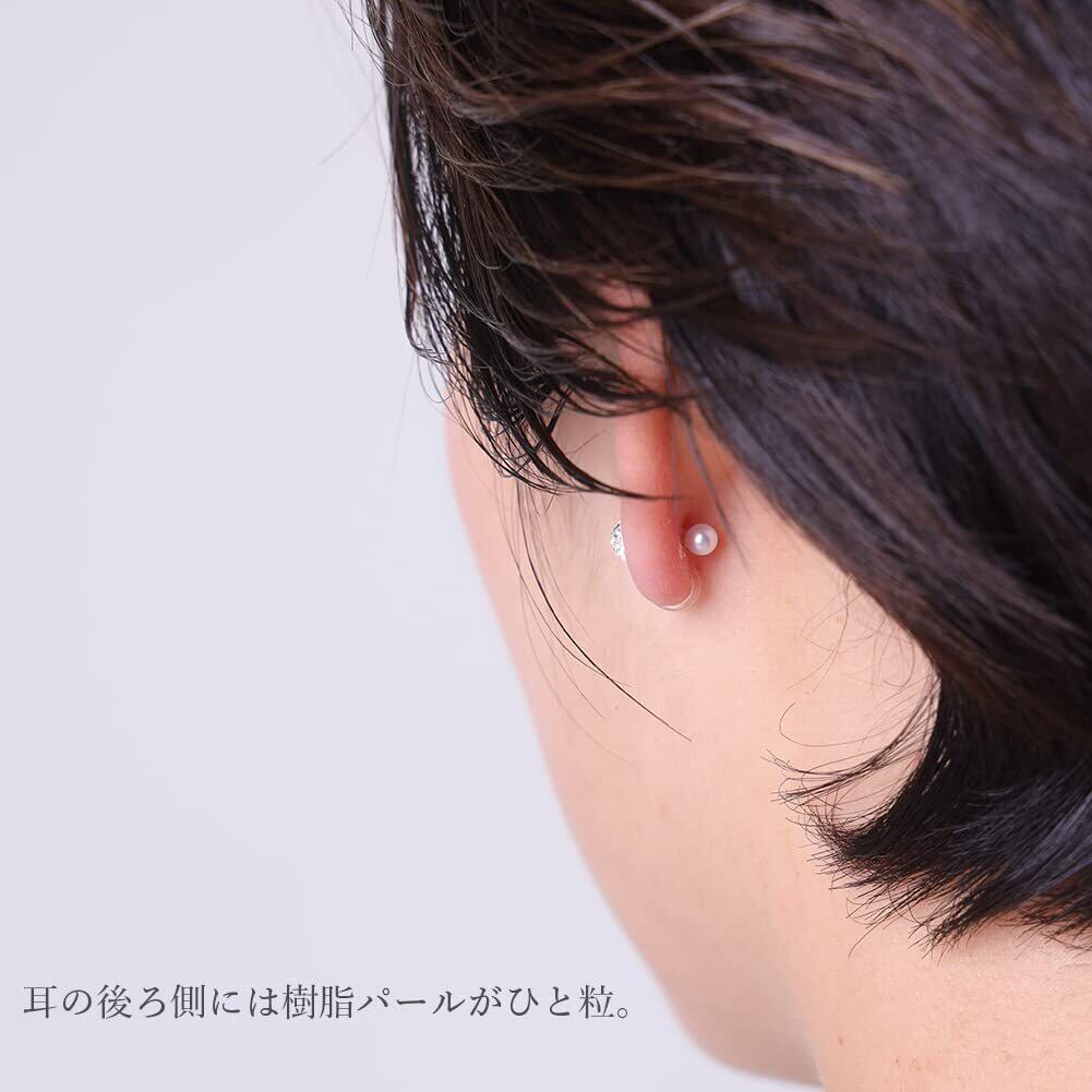 【樹脂ノンホールピアス(ピアス風イヤリング)】 穴が空いてなくても着けられるピアスみたいなイヤリング。ホールド部分はしなやかな樹脂を採用しているため、ホールド感がありながらも耳たぶを締めつけず、痛くならないと大好評です。 耳の後ろ側にも愛らしい樹脂パールがひと粒ついています。