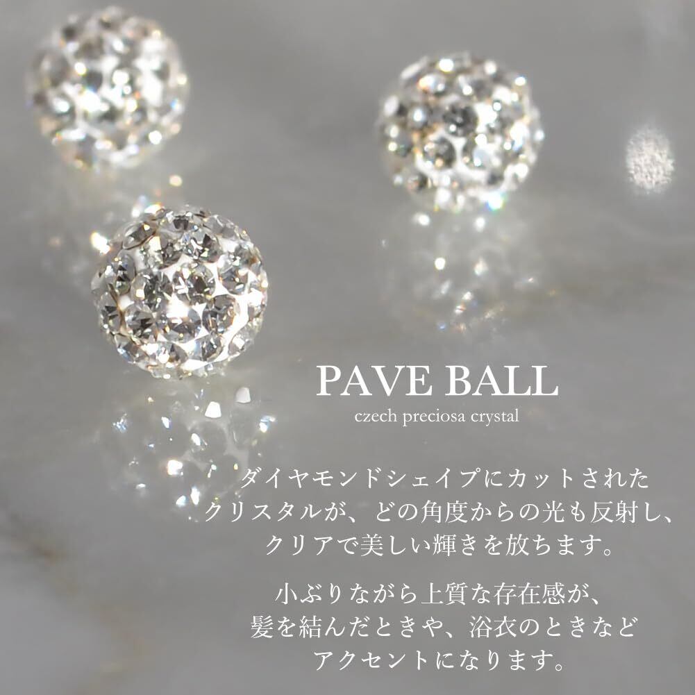 【パヴェボール】美しい輝きを放つパヴェボールを使用したアクセサリーシリーズ。 キラキラしてカワイイ、上品と大人気の8mmパヴェボール樹脂ノンホールピアス。