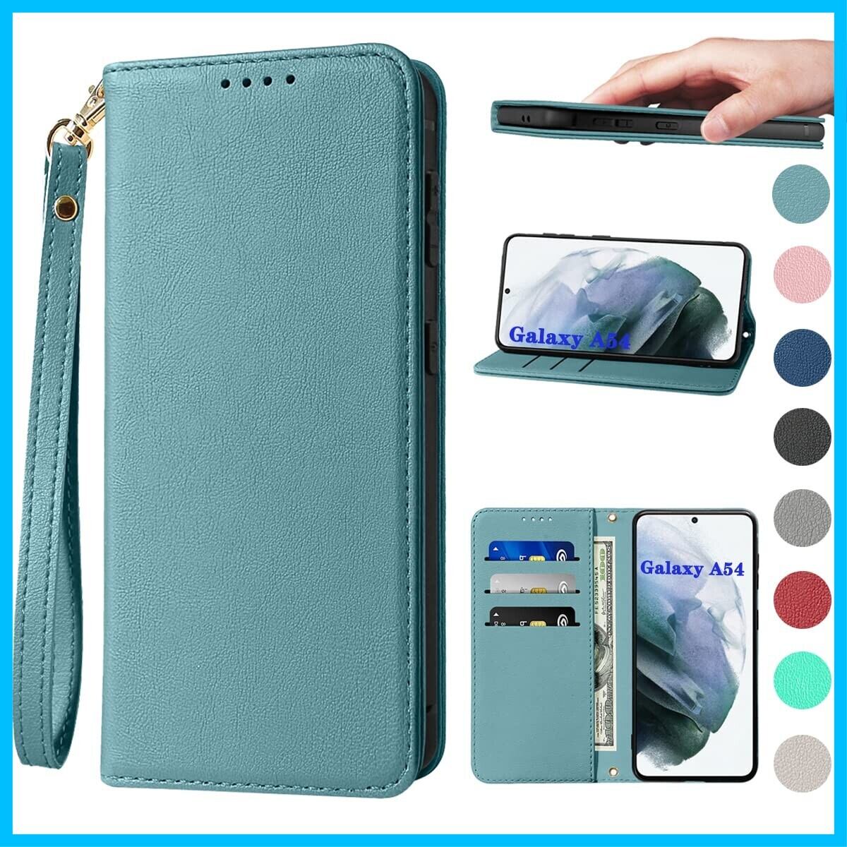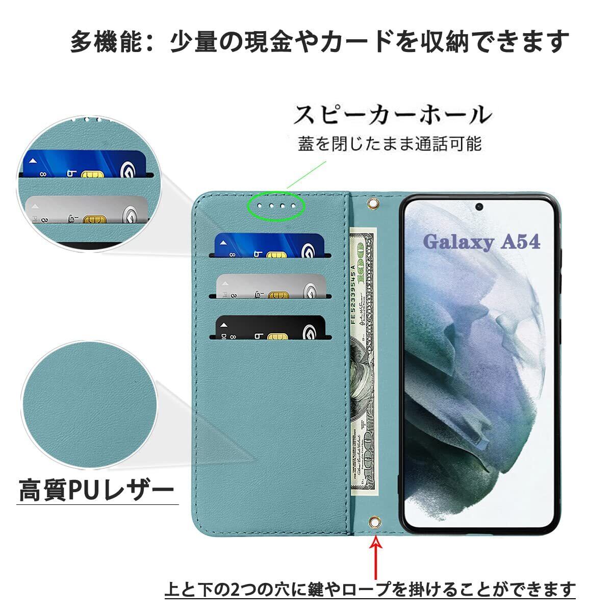 Galaxy A54 5G ケース 手帳 高質PUレザー Galaxy A54 5G カバー SC-53D ケース 手帳型 SCG21 ケース 携帯カバー 耐衝撃 皮革 内蔵マグネット開閉式 ベルトなし スマホケース おしゃれ カードポケット スタンド機能 便利 スプラット同梱 携帯ケース ヘイズブルー