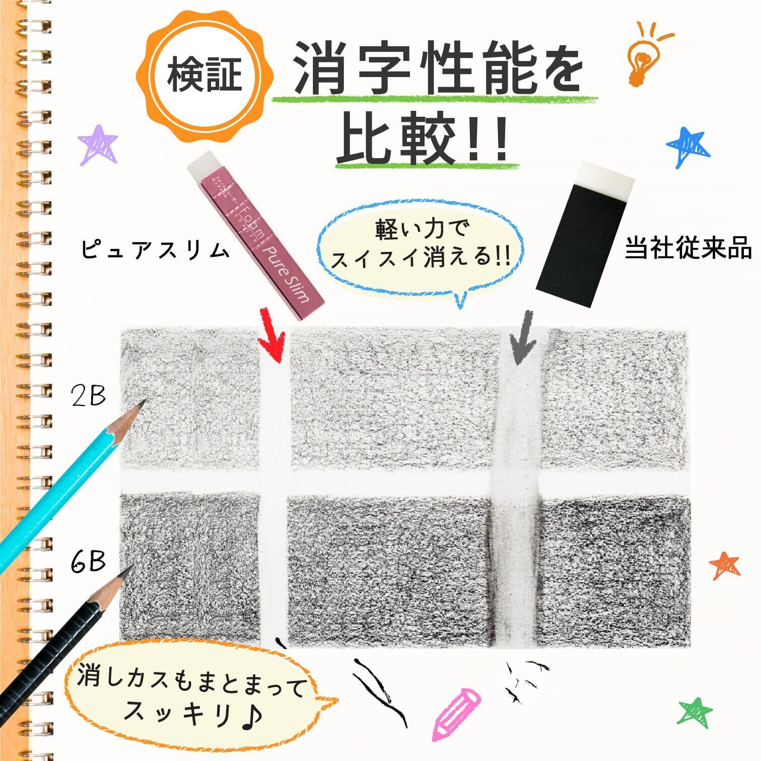 【特長2】フォーム生地で消字性能アップ・軽いタッチでよく消え、消しくずがまとまる