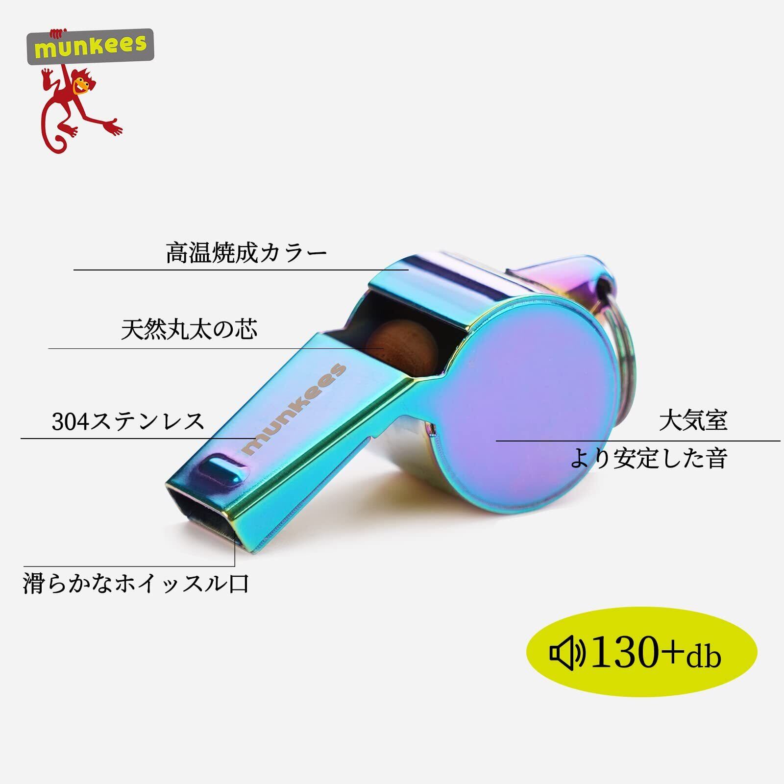 munkees ホイッスル 登山 アウトドア 大音量 口笛 防災グッズ 304ステンレス鋼 カラフル