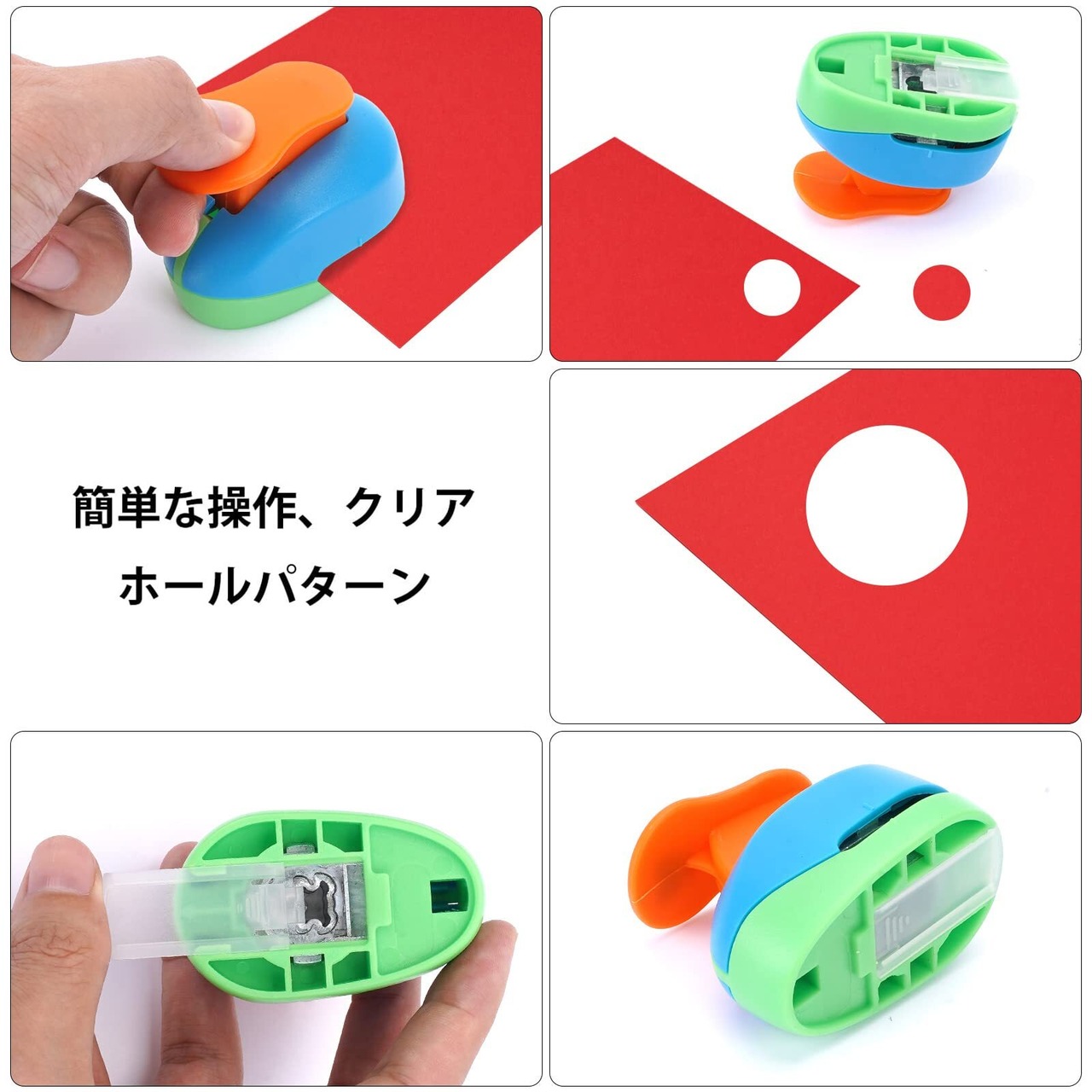 【クラフトパンチ素材】材質: ABS + 合金、絵柄名称:サークル。クラフトパンチセットは人間工学に基づいたハンドルがあり、紙詰まりを引き起こさず、形状をすばやく簡単にパンチアウトできます。