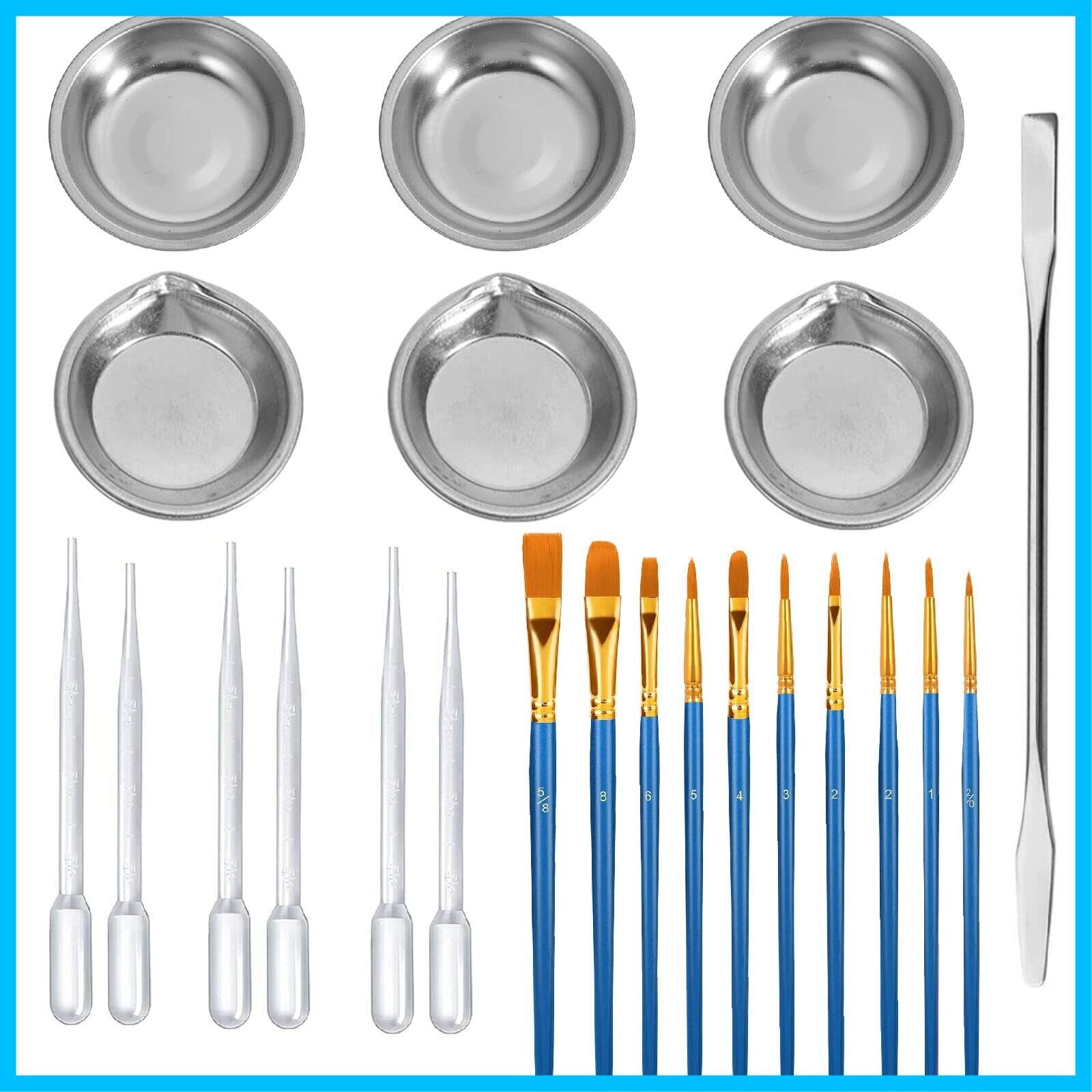 プラモデル 塗装セット:ステンレス製の塗料皿×6枚、塗装筆×10本、スポイト×6枚、調色スティック×1枚,合計23点セット、お得です。