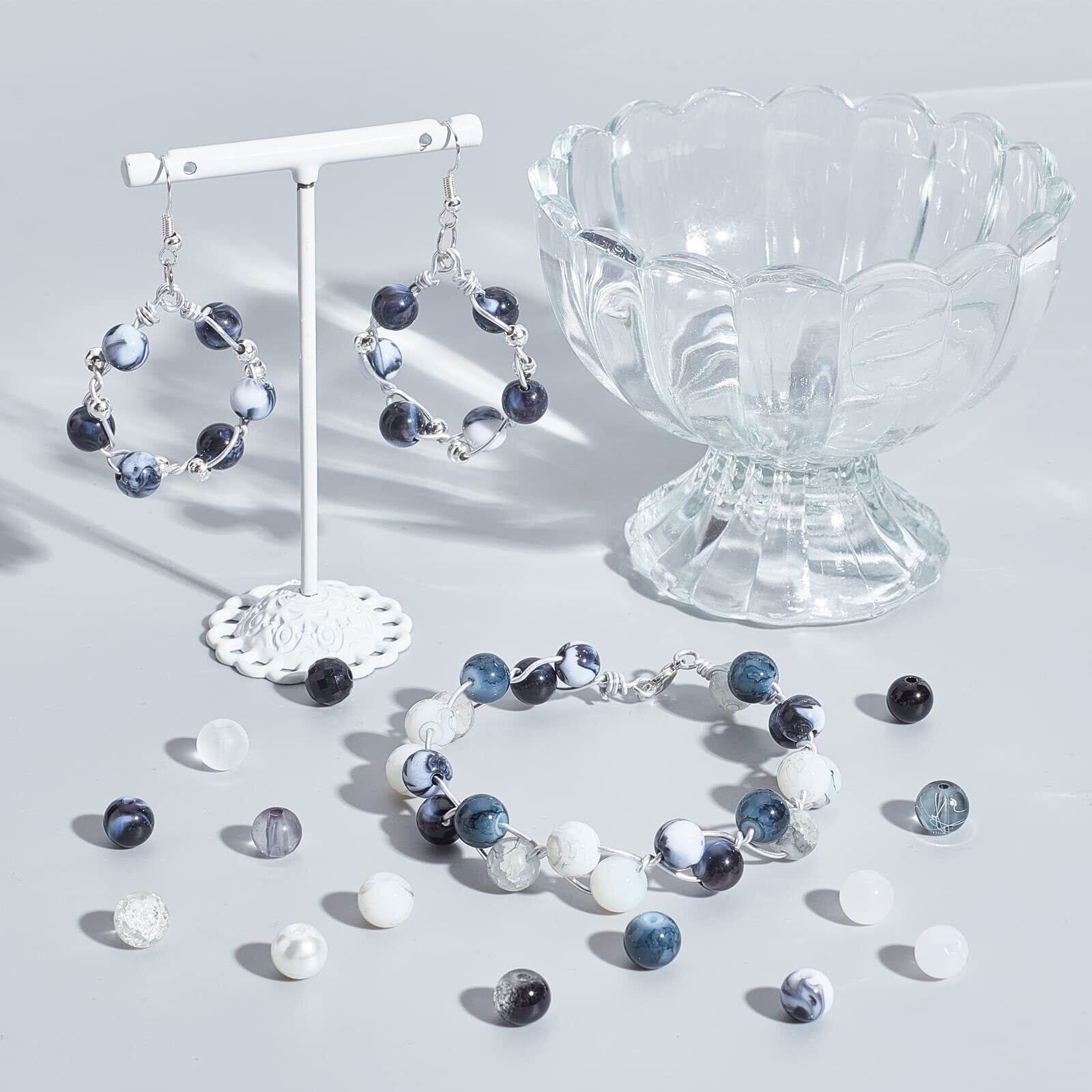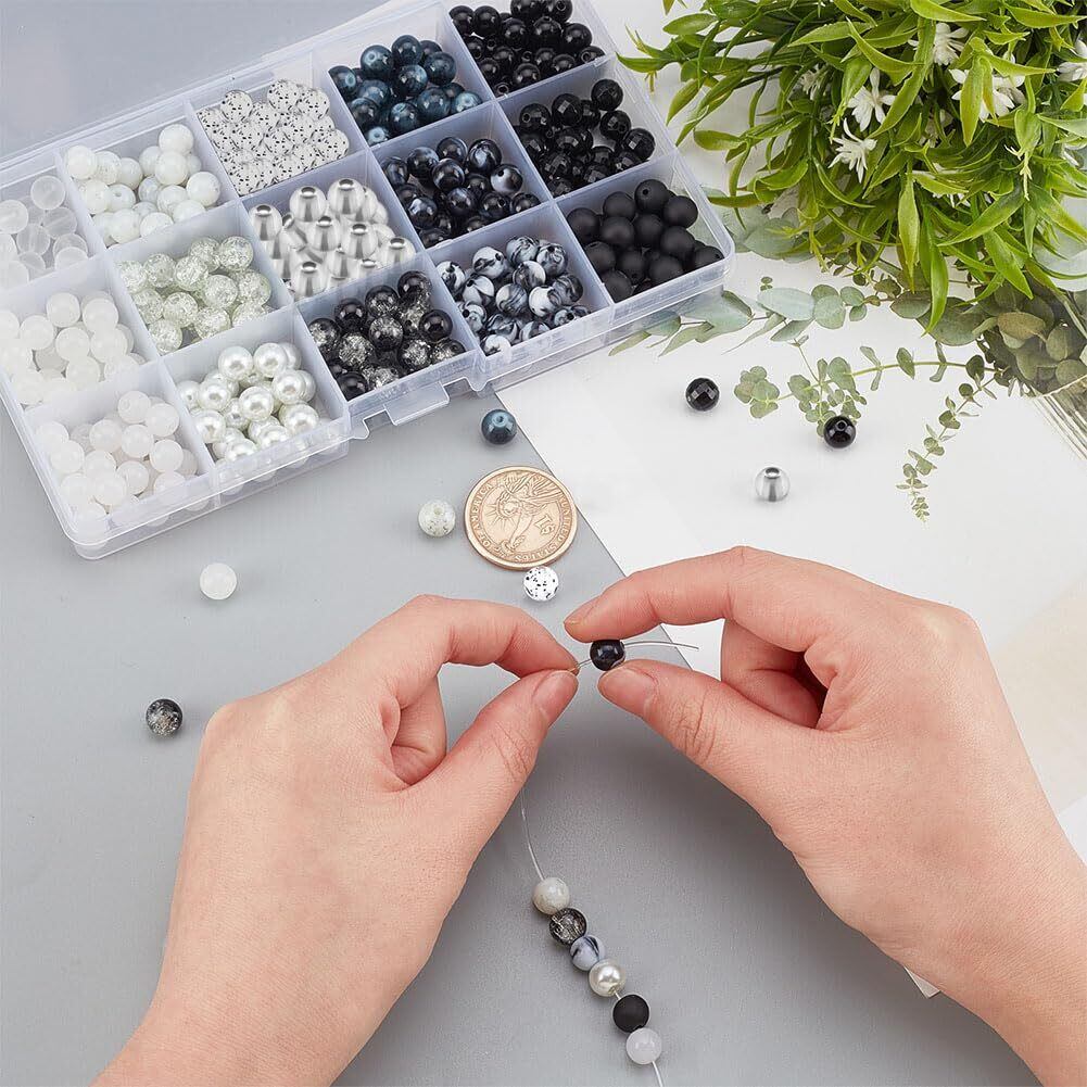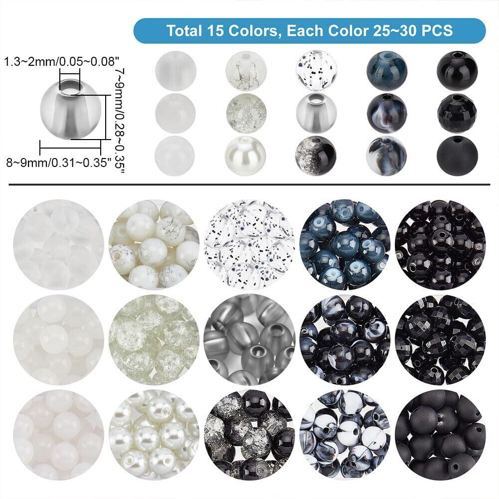 マーブル調のビーズ:15色の黒と白のシリーズ、割れたガラスビーズ、模造ヒスイ、スプレー塗料、アクリルビーズや他の多くのスタイル、DIYのハロウィーンスタイルのジュエリーを作るために適したと衣装の装飾など