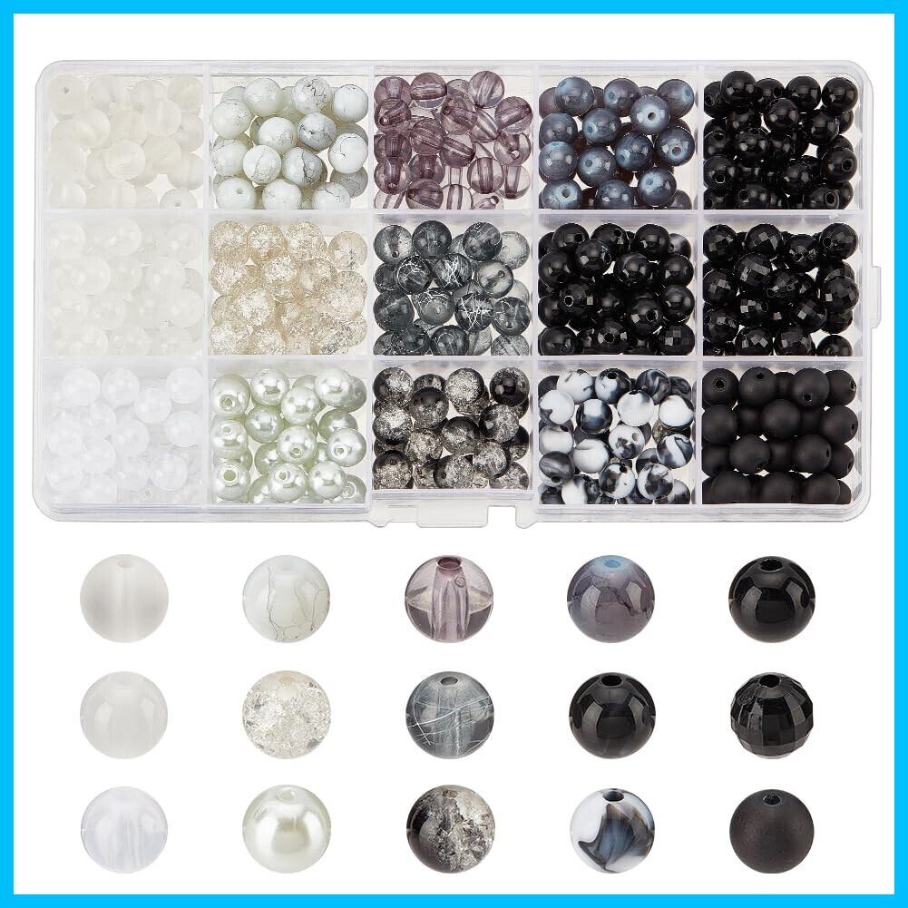 PH PandaHall 15色 ガラスビーズ マーブル色ビーズ ホワイト ブラック アクリルビーズ インク風 アクセサリーパーツ 手作り用品 DIY用 材料 ブレスレット ネックレス ジュェリー 手芸用品 ハンドメイド(8mm)