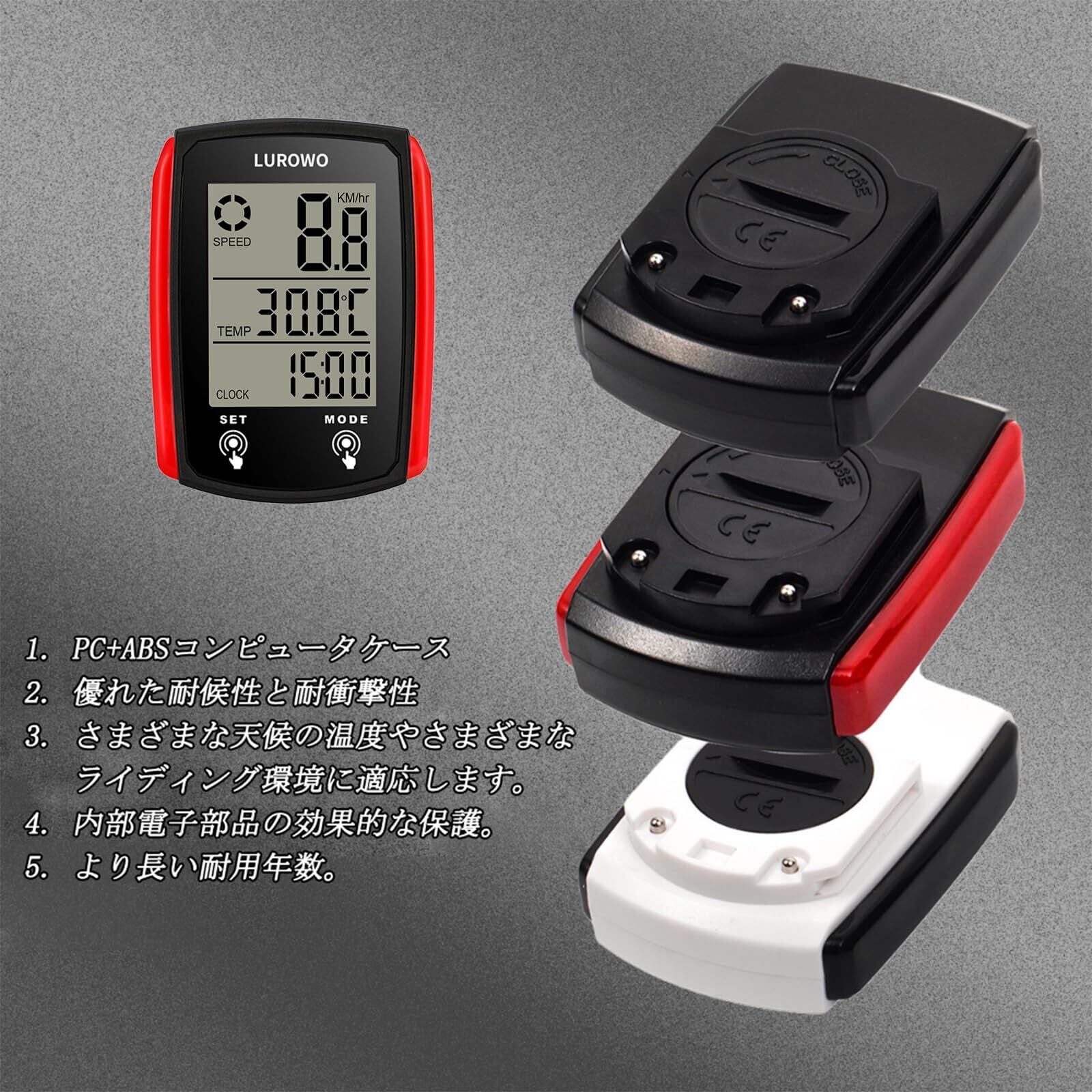 「取り付けが簡単」:詳細な英語説明書と組立図が付きます。その上、このサイクルコンピューターは特別モデルです。 「 LUROWO 」のロゴが入ったケースのみが正規品となりますので、識別には注意してください。