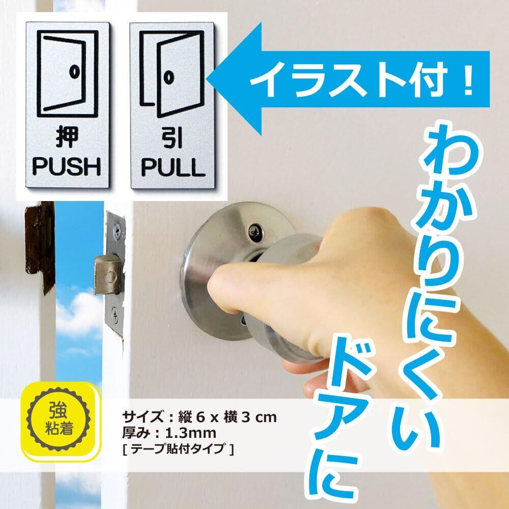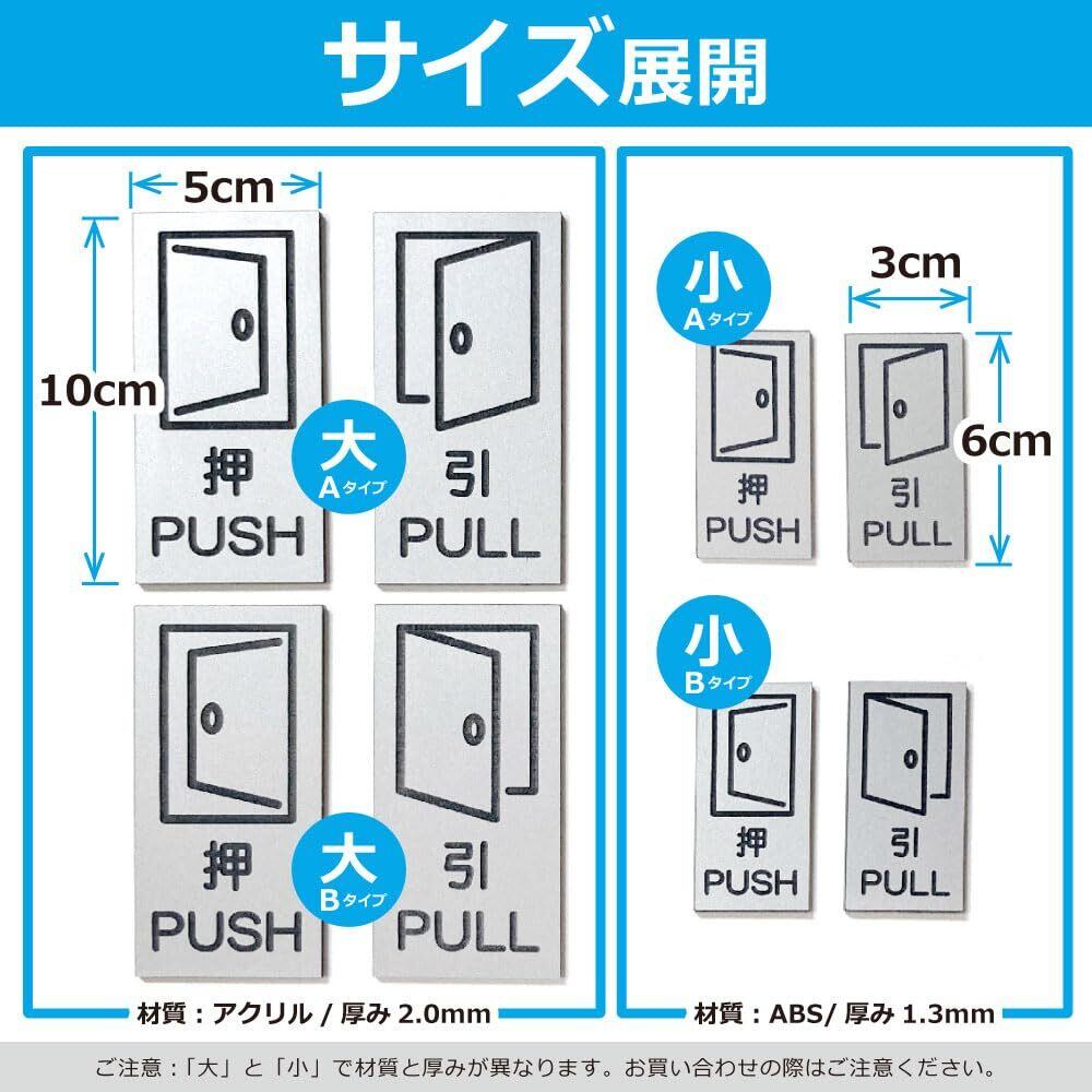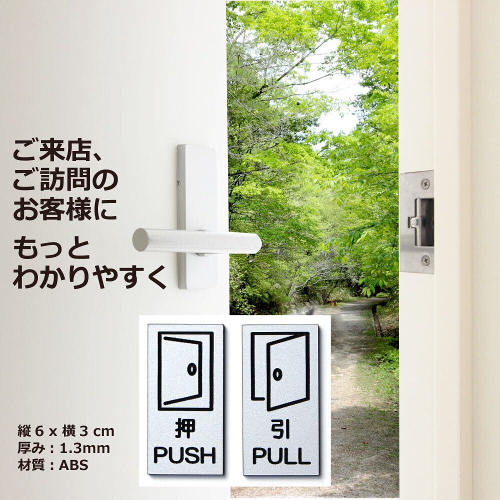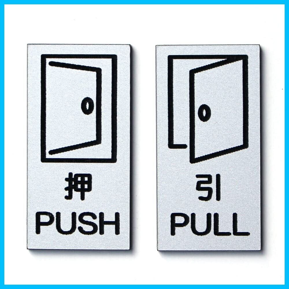 MKE 押す引くプレート 2枚セット 押引 ステン調 ドアプレート 扉 シール付 (A/小/シルバー)