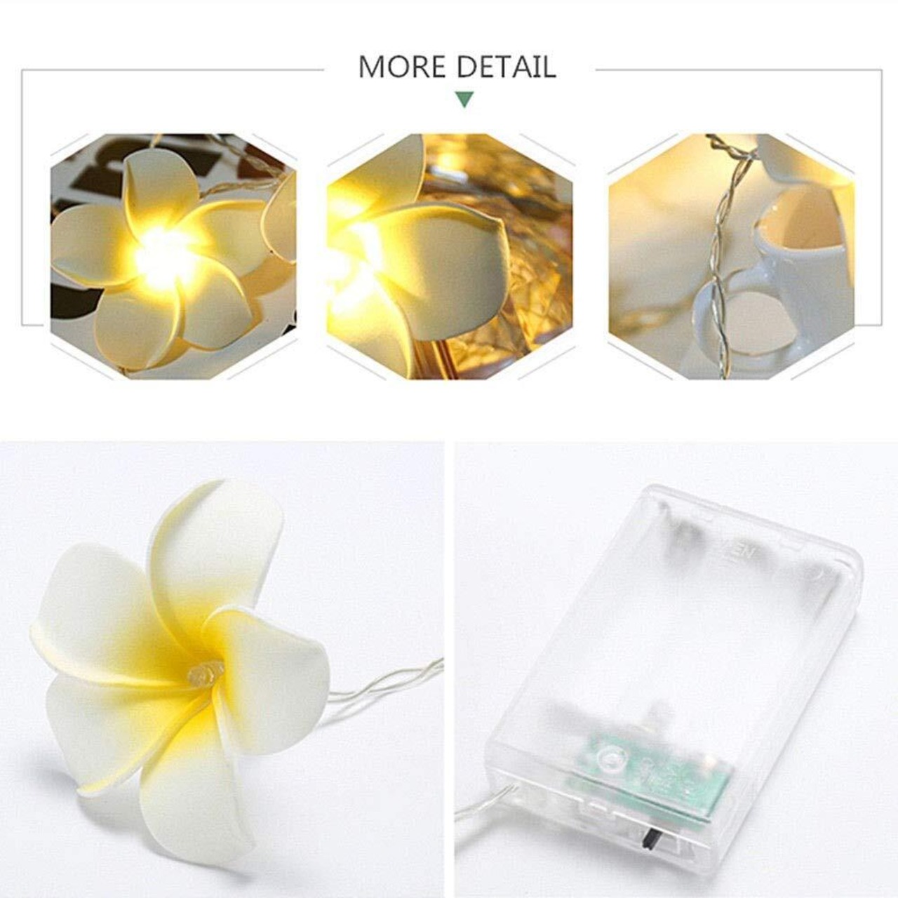 このプルメリアライトには単3電池が3本必要です (商品には含まれません)。2つのライトモード:常時点灯と点滅。さまざまな要件を満たすことができます。