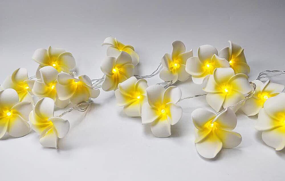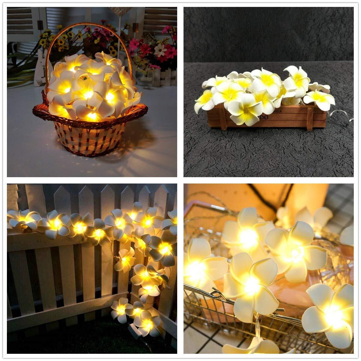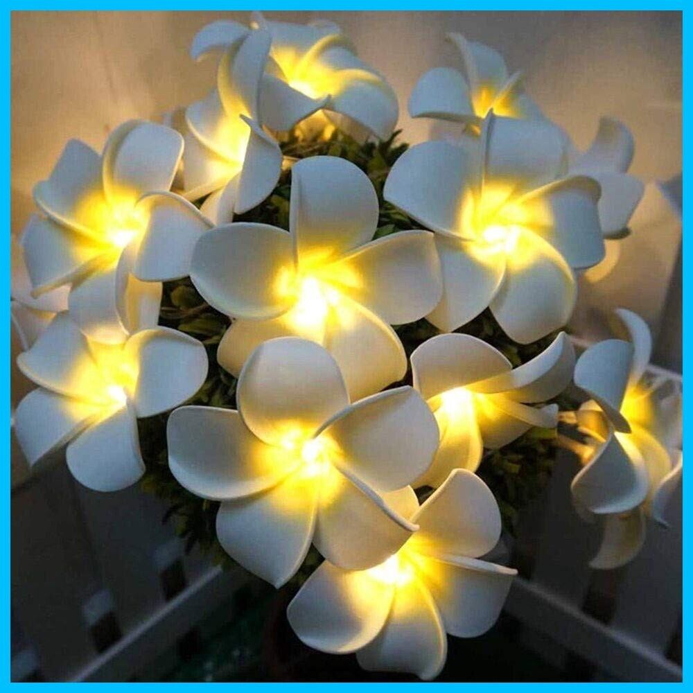 Fantasee プルメリアストリングライト、フォーム人工プルメリアフラワーLEDストリングライト 電池式 フェアリーライト 屋内/寝室/自宅/ウェディング/ハワイアンルアウパーティーの装飾用 20フィート 40LED ウォームホワイト