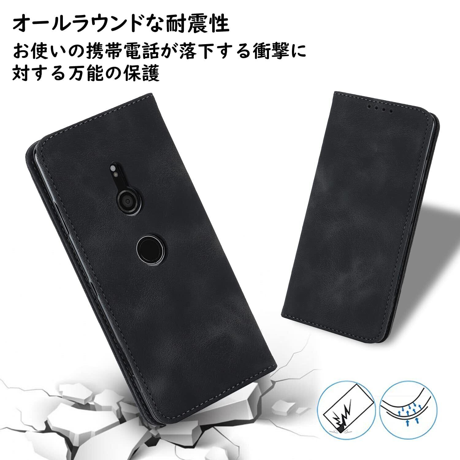 Havaya 対応 Xperia XZ3 ケース SO-01L ケース 手帳型 ストラップ SOV39 耐衝撃 801SO docomo 対応ソニー エクスペリアxz3 第3世代 カバー au SoftBank カード収納 ドコモ スエードの質感-ブラック