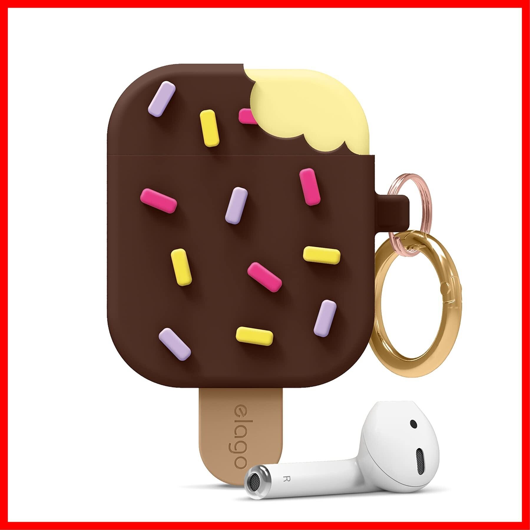AirPods 対応 ケース カラビナ 付き シリコン カバー 耐衝撃 衝撃 吸収 ケースカバー 耐衝撃 傷防止 落下防止 おしゃれ 保護 アクセサリー ICE CREAM ダークブラウン
