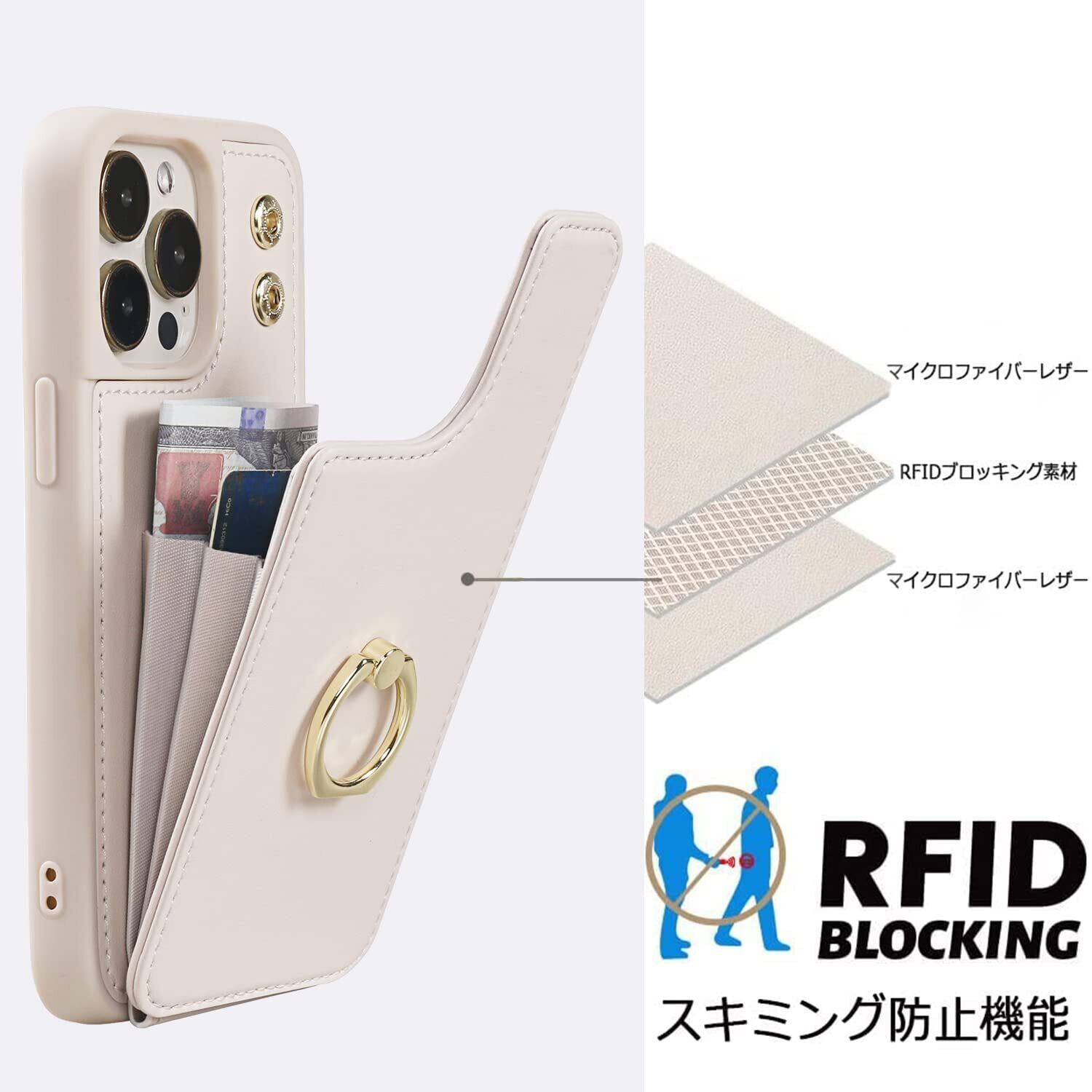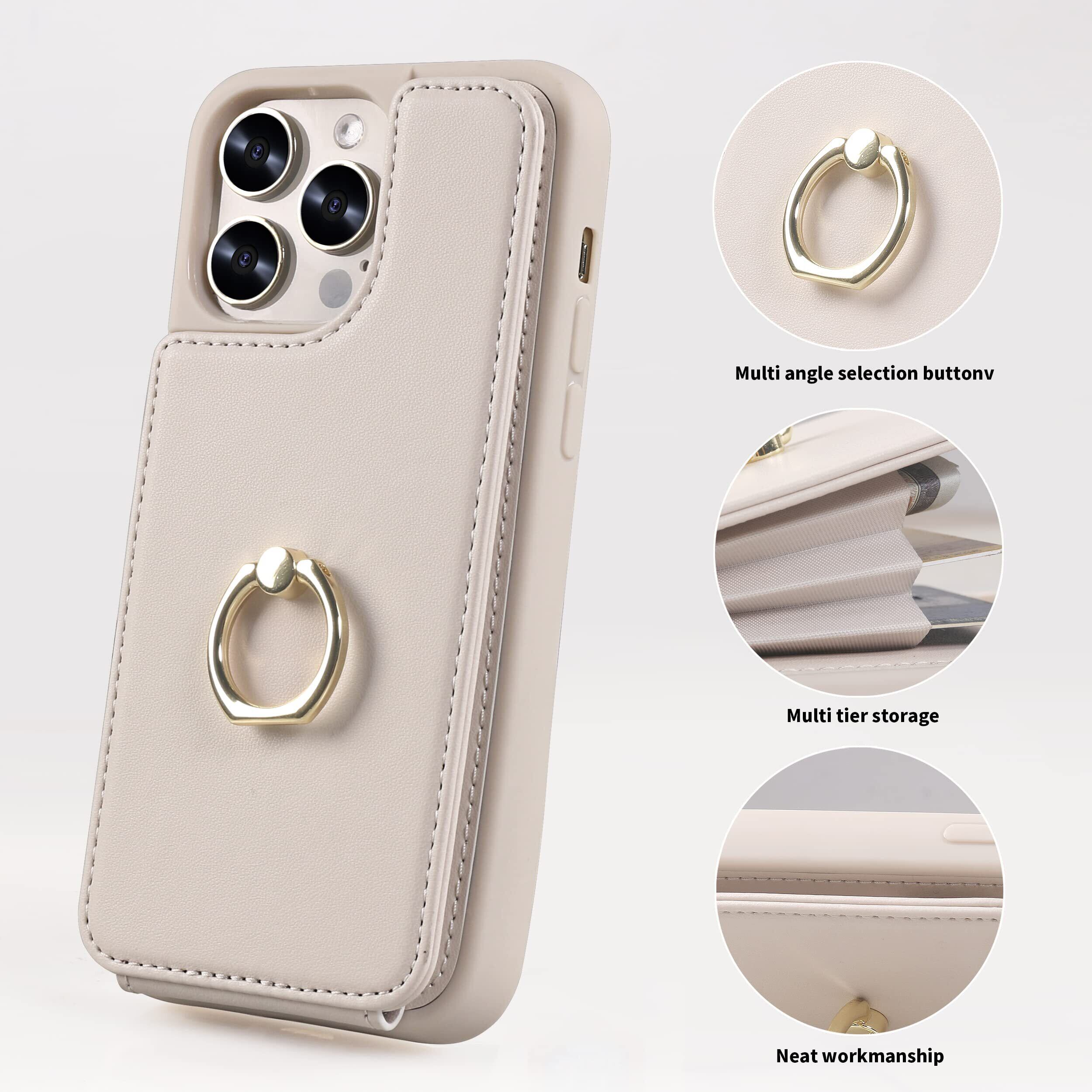 iPhone 12 ケース 財布型 iPhone12pro 背面ケース おしゃれ iphone12 case カード収納 背面収納 アイフォン12 プロ 背面カード 360°回転リング スタンド機能 手触りが良い 女性用 人気 上質 ベージュ