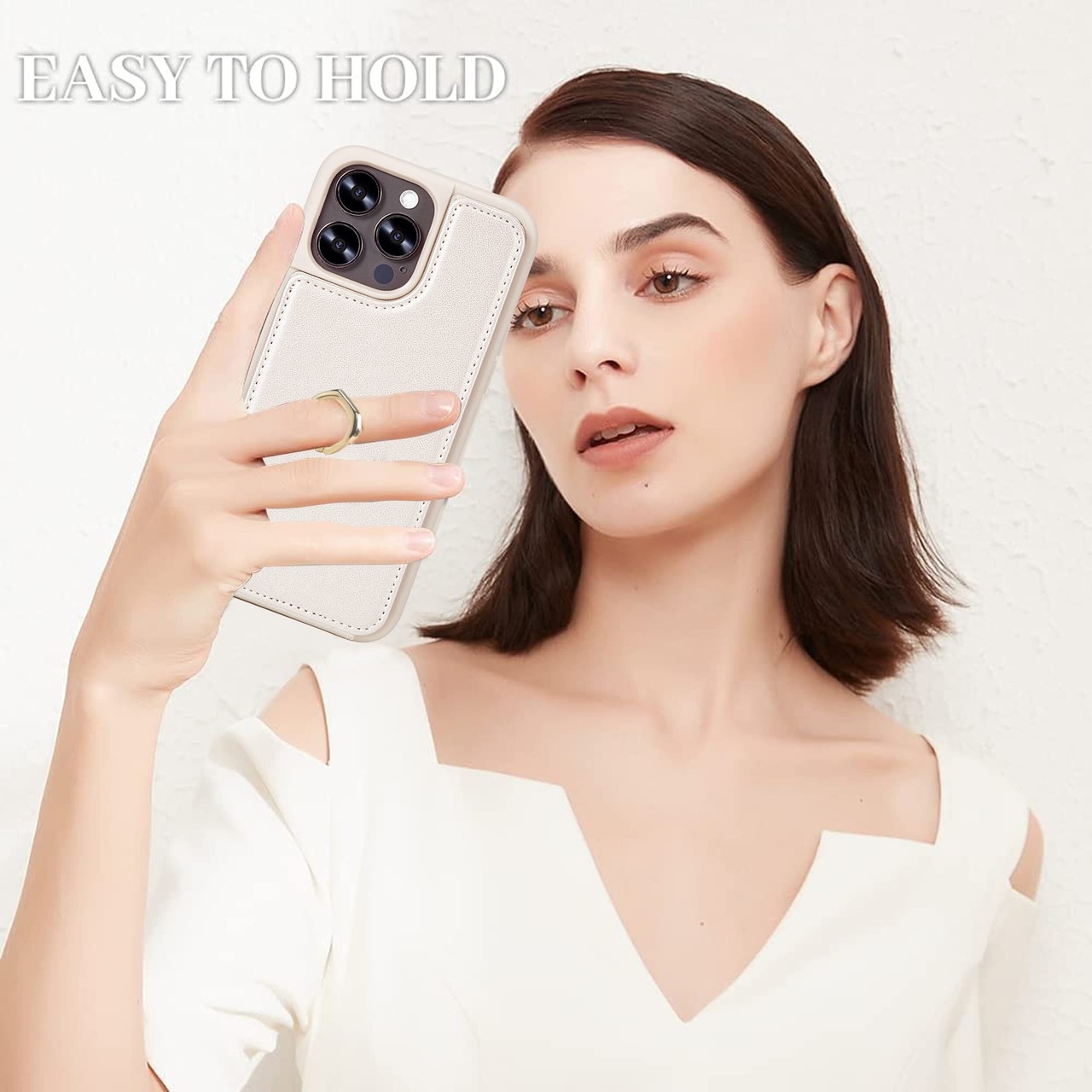【細部にこだわり】①ゴールドパーツをアクセントに上品で高級感のあるデザイン②カメラホールのフチがカメラより高くなっているので、傷がつきにくい③高品質PUレザー、汚れ・埃がつきにくい、防水性があります