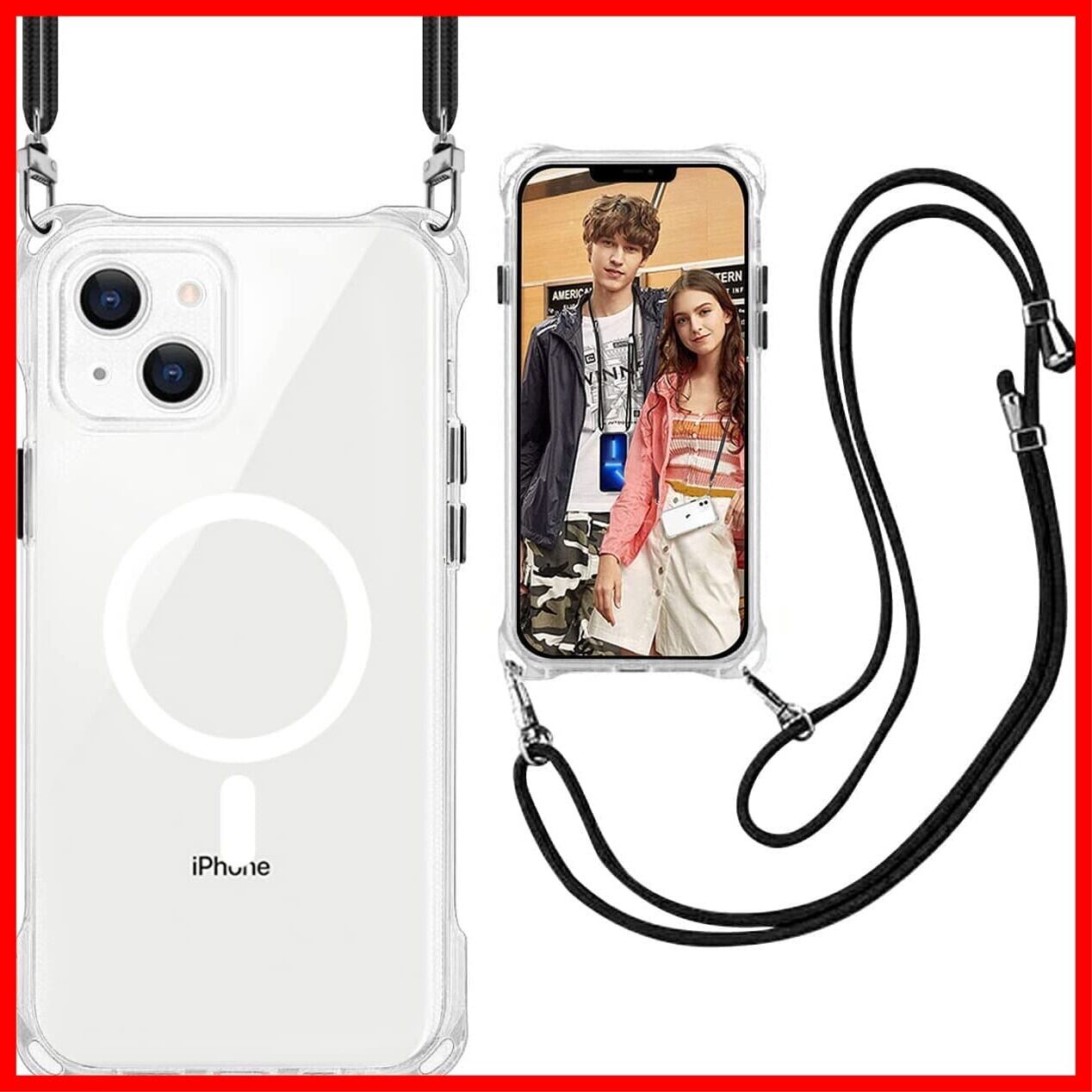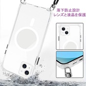 MagSafe対応 iPhone 12 用 ケース クリア ストラップ ショルダー マグネット搭載 HILEGENERアイフォン12 カバー 肩掛け 斜めかけ 縄掛けケース カメラレンズ保護 紐付き 斜めがけ 織りスト ネックストラップ ショルダー ケース 縦/横 2WAY 長さ調整可能 取り外し可能 落下防止 紛失防止 ワイヤレス充電対応 (あいほん12-クリア)