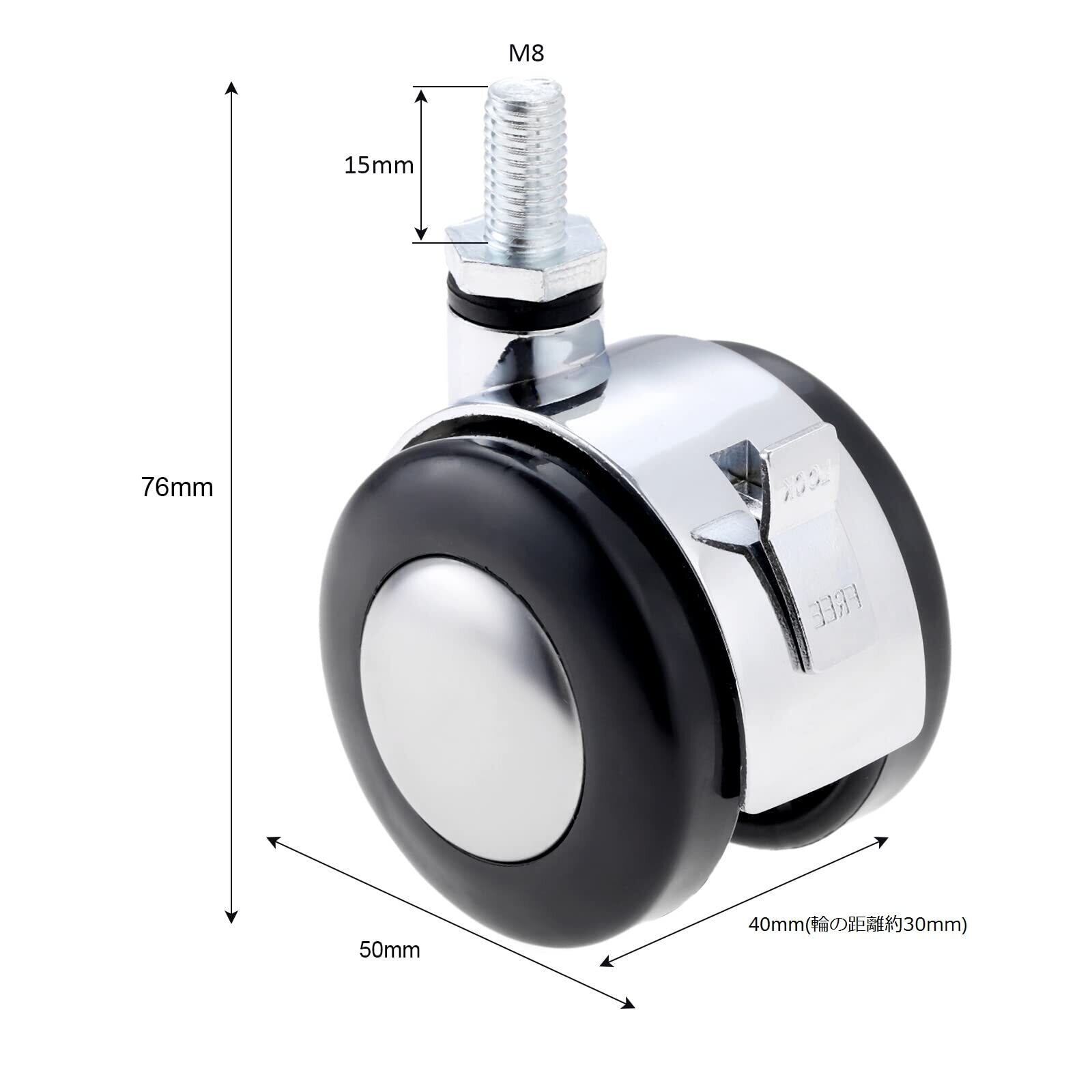 HZ-MONSTAR キャスター M8ねじ ボルト式 4個セット ストッパー機能あり 輪直径50mm 約2インチ 1個双輪 脚車 4個耐荷重80kg 旋回キャスター 自在に向き変る 家具 スーツケース 手押し車 台車 移動用部品交換