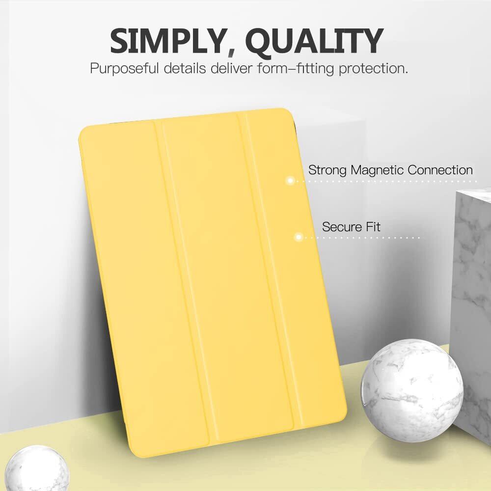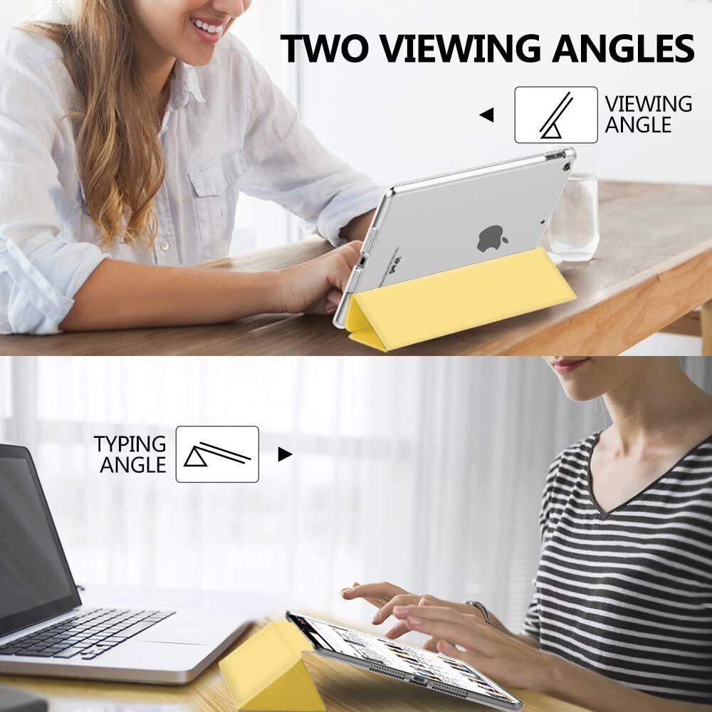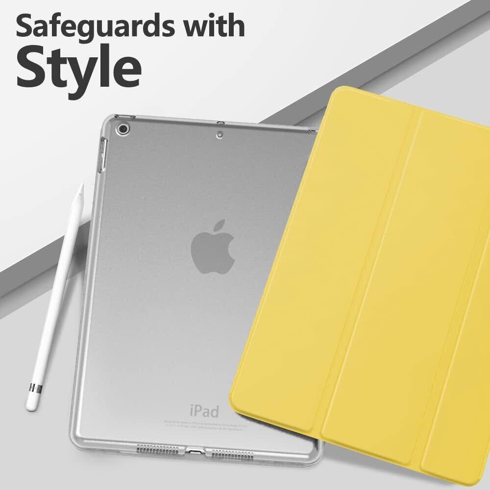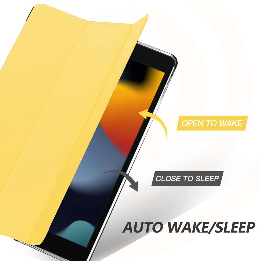 iPad 9 ケース 2021 MoKo iPad 10.2 ケース 第9/8/7世代(2021/2020/2019) 半透明 オートスリープ機能 薄型 スタンド 三つ折り 高級PUレザー 裏地マイクロファイバー 傷防止 スマートケース LightYellow