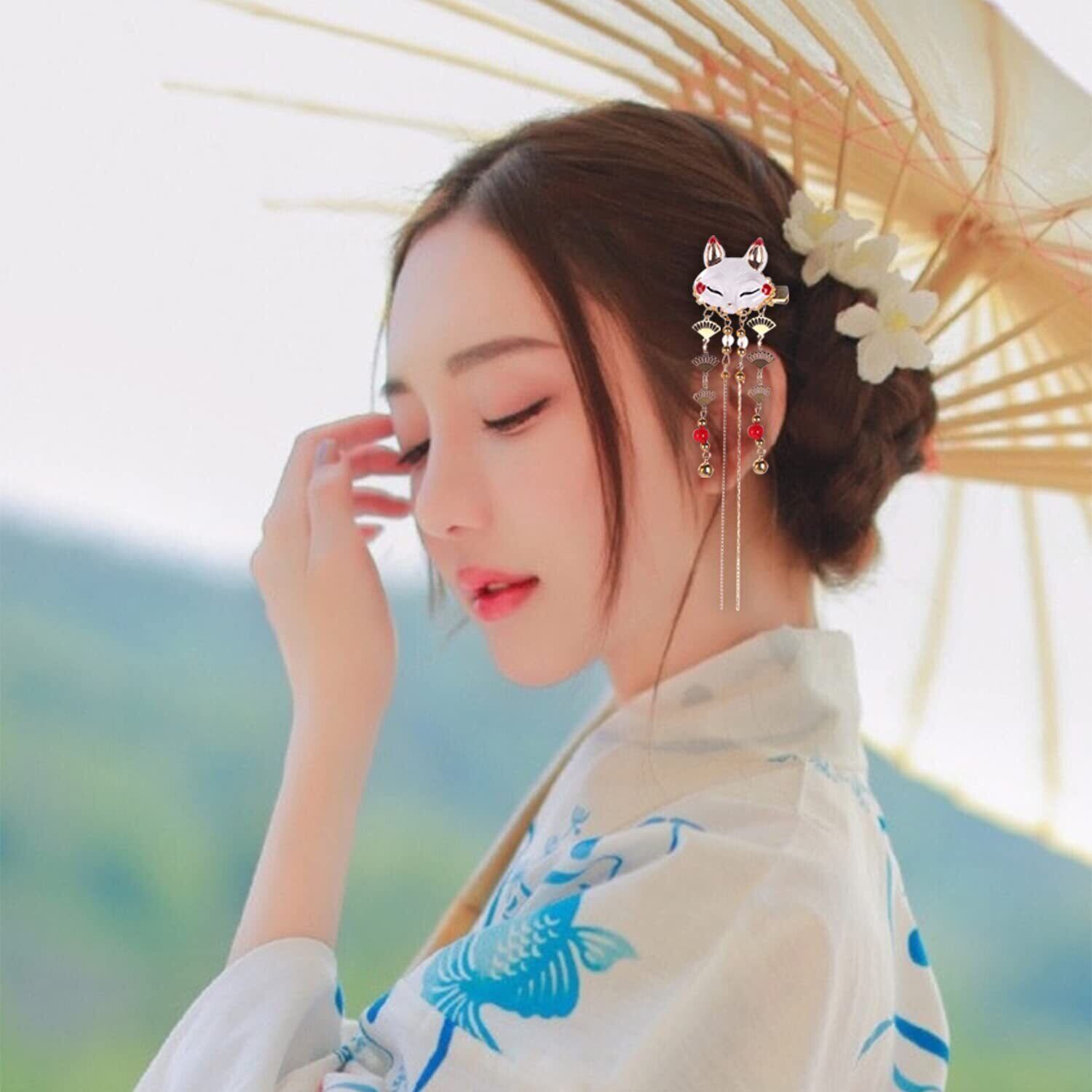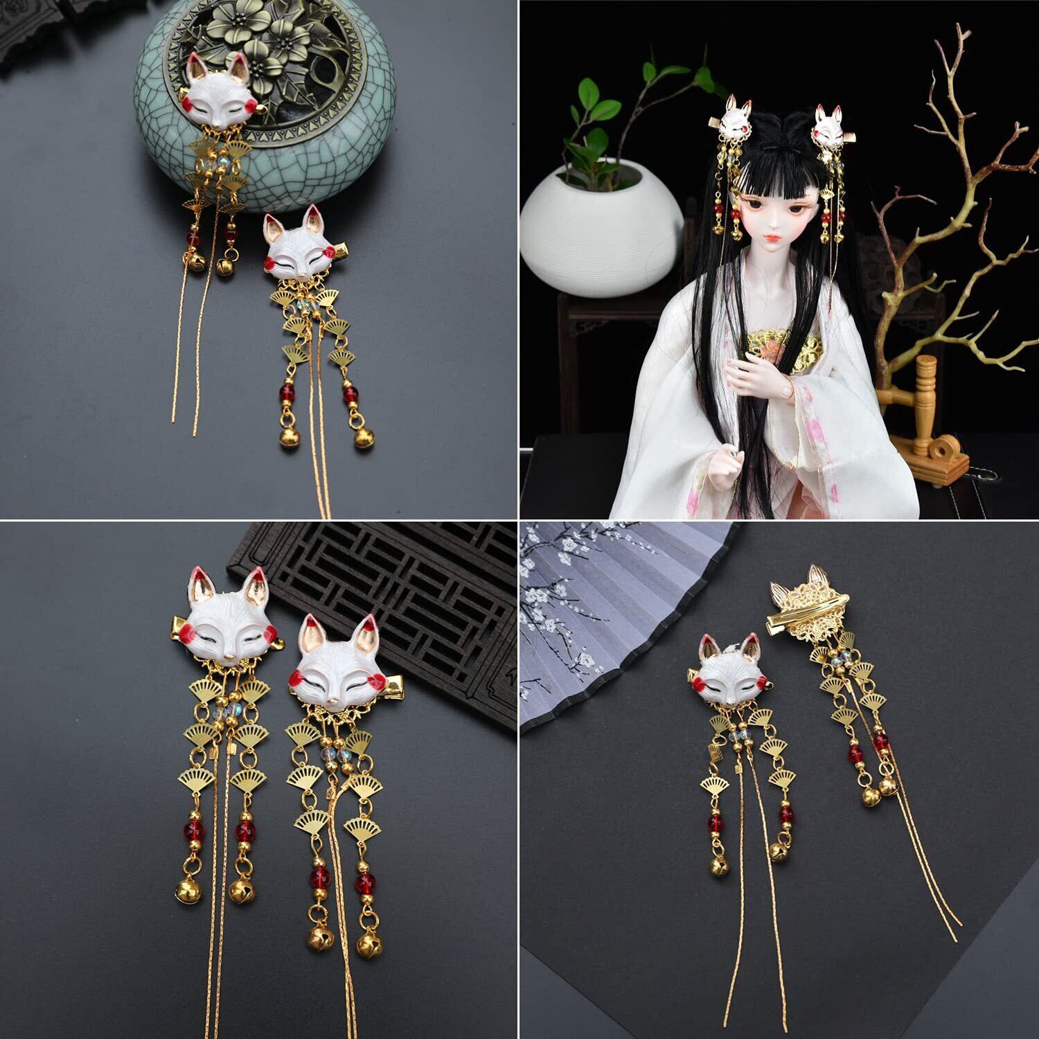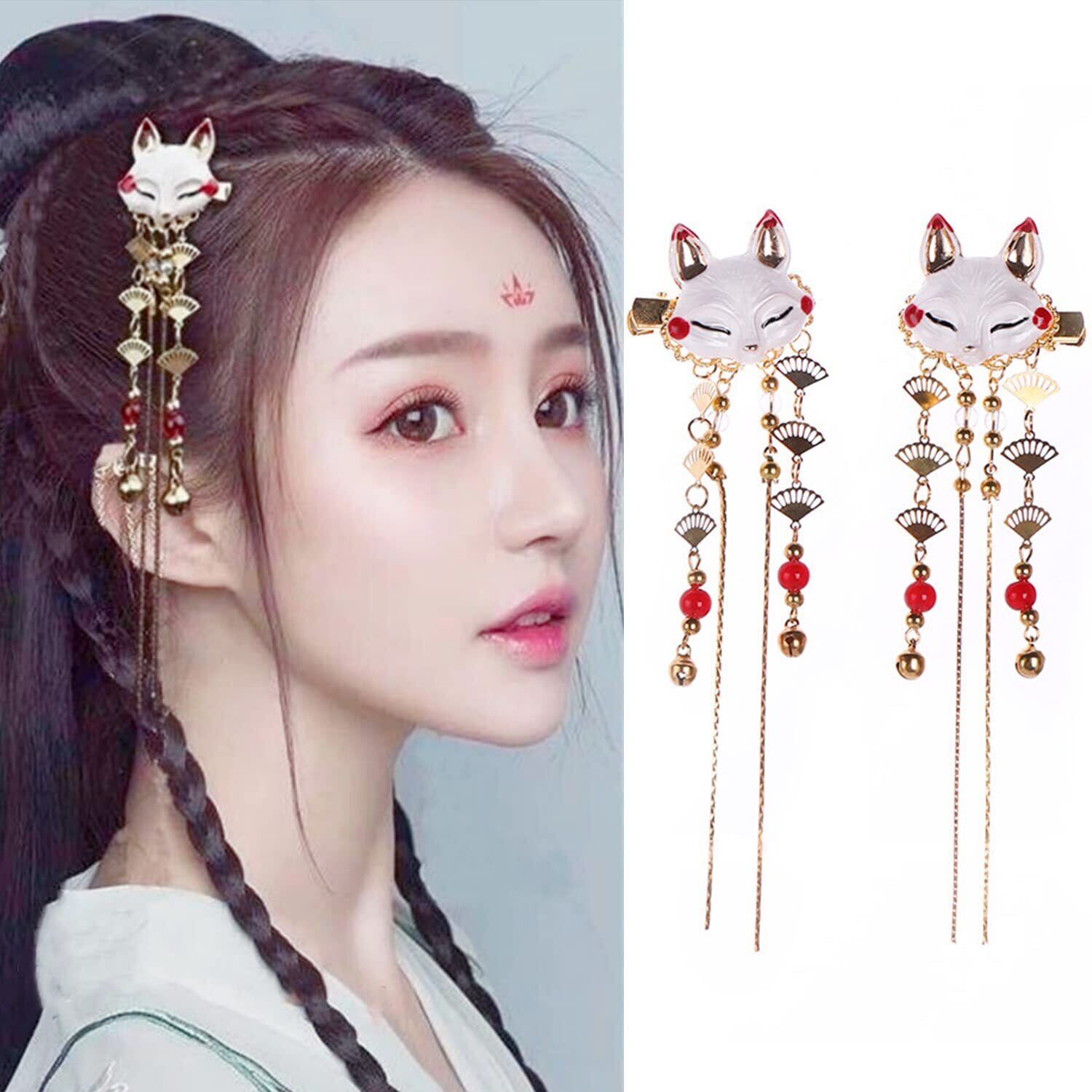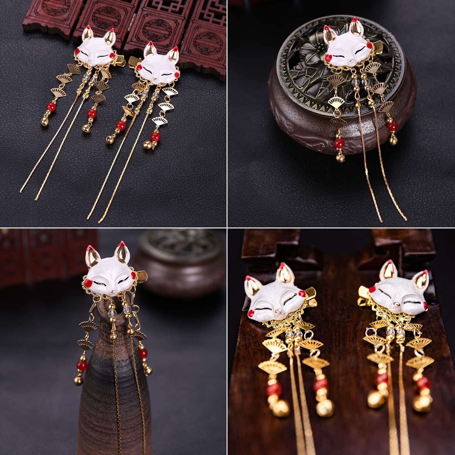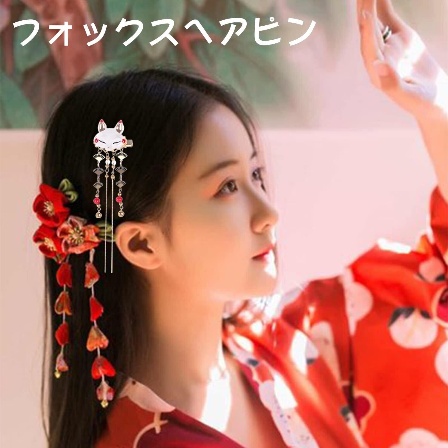 RICISUNG キツネ ヘアクリップ 漢風 ヘアアクセサリー 和装 髪飾り 浴衣 ヘッドドレス タッセル 卒業式 結婚式 着物 漢服 成人式着物に適用 ウェディング ホワイト