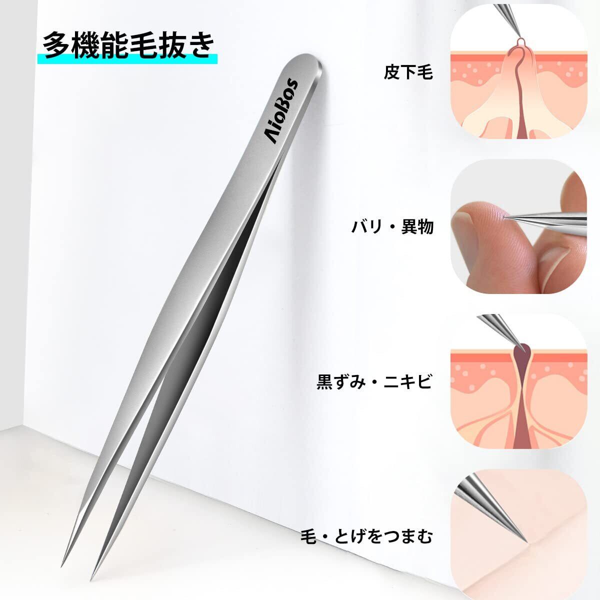 AioBos 毛抜き 先細め 先尖 0.08mm 精密 ピンセット 熱処理済み サンドブラスト 眉毛抜き 鼻毛 黒ずみ取り ヒゲ とげぬき 処理 男女兼用 収納ケース 毛が簡単に正確に毛を抜く