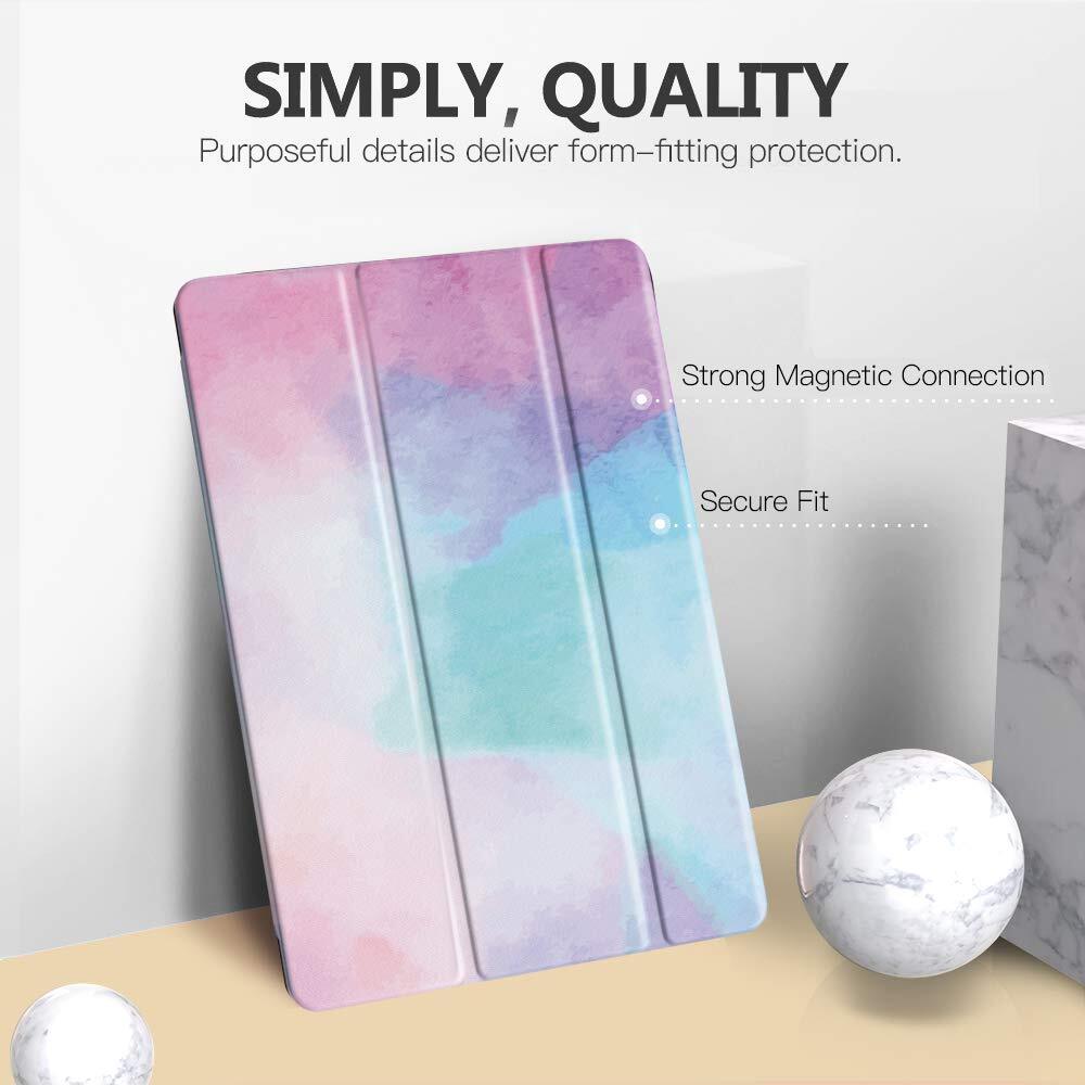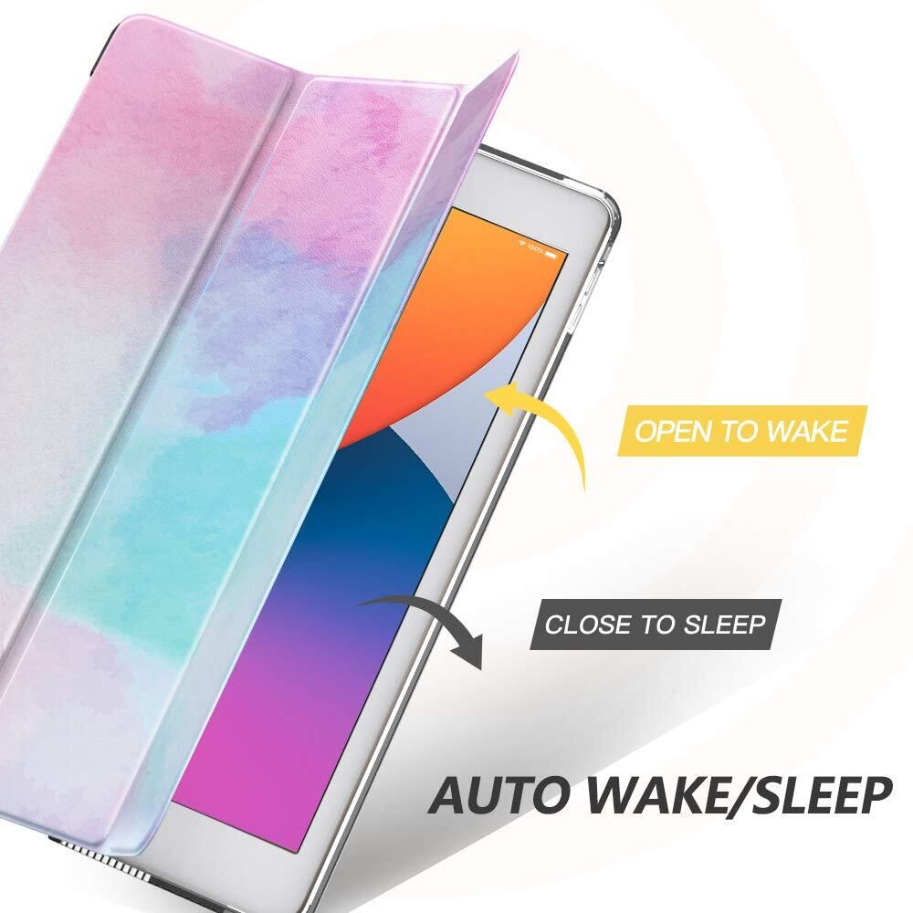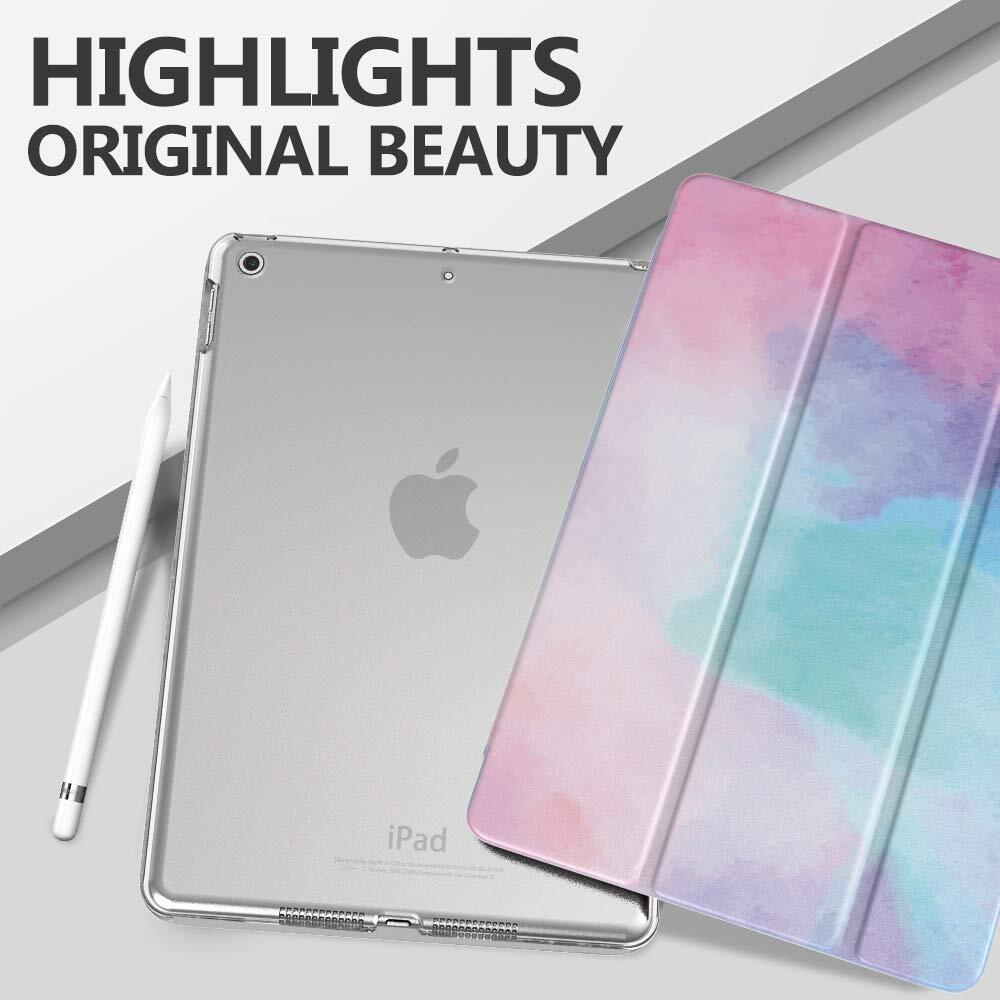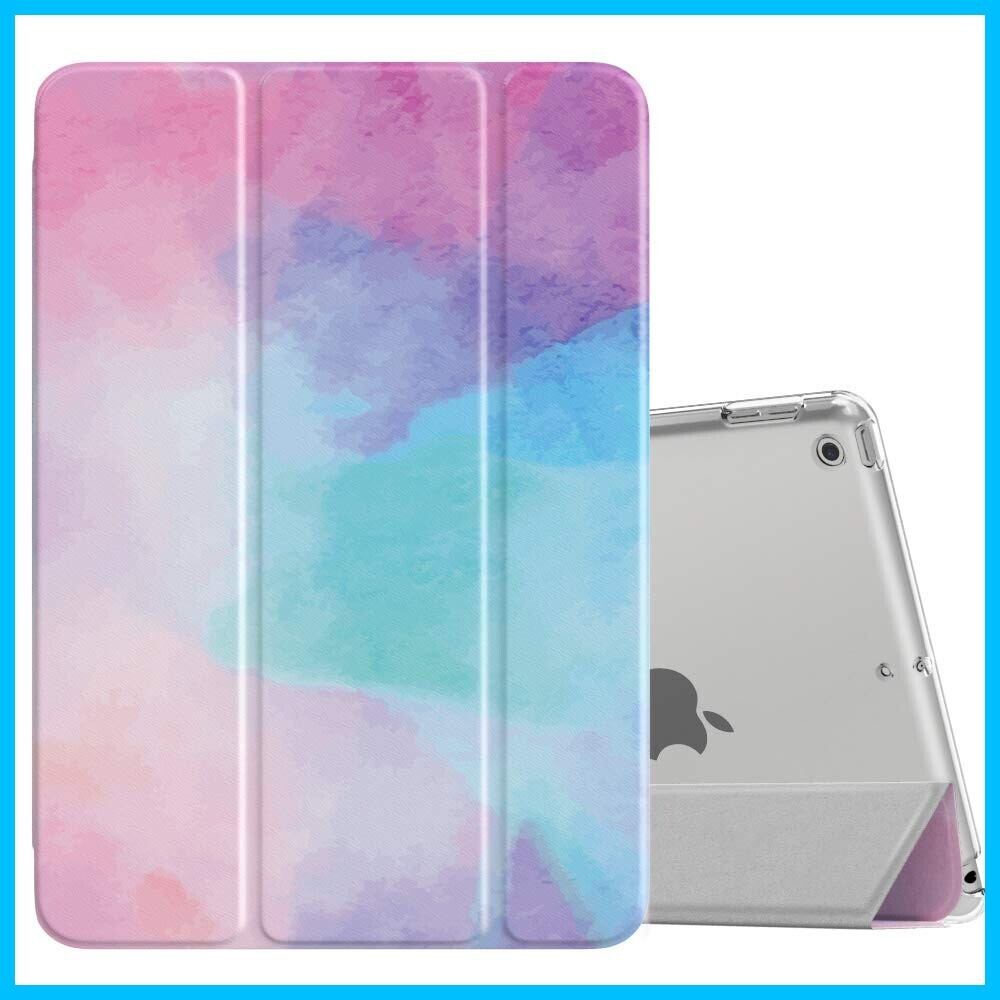 iPad 9 ケース 2021 MoKo iPad 10.2 ケース 第9/8/7世代(2021/2020/2019) 半透明 オートスリープ機能 薄型 スタンド 三つ折り 高級PUレザー 裏地マイクロファイバー 傷防止 スマートケース WaterColor