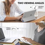 [三つ折りスタンド]: 表面カバーは二つの溝デザインされて、溝を折るとスタンドになれます。二つの置く角度によって両手解放で動画鑑賞を楽々に楽しめ、またはタイピング角度にも変えて、仕事やゲームなどもっと快適に進められます。