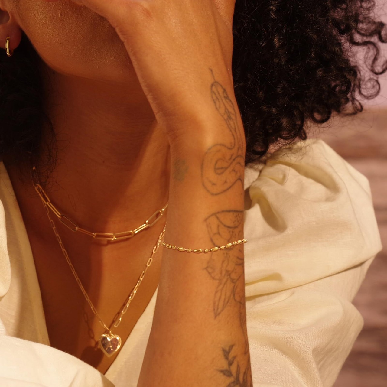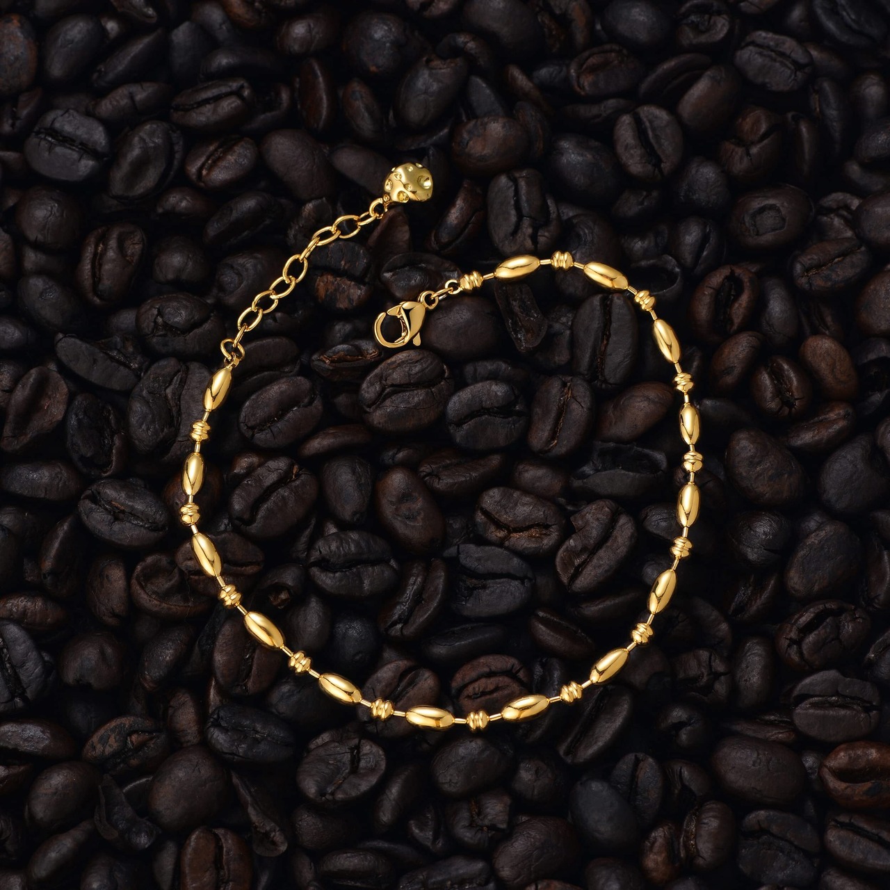 【安心製】ブレスレットに18Kゴールドメッキ高純度素材を採用し、金属アレルギー対応肌に優しく、アレルギー反応起こりにくく、敏感肌の方でも安心してご利用いただけます。引っ張っても切れにくい。