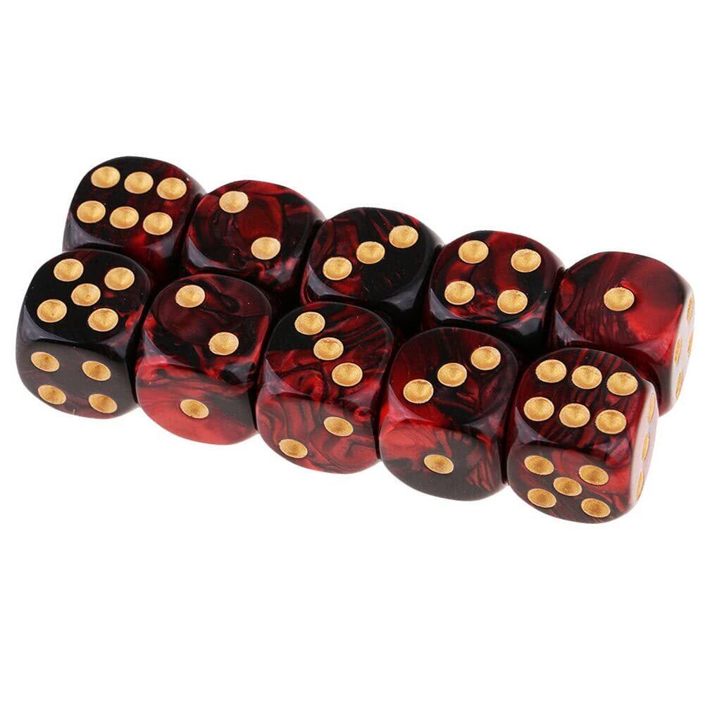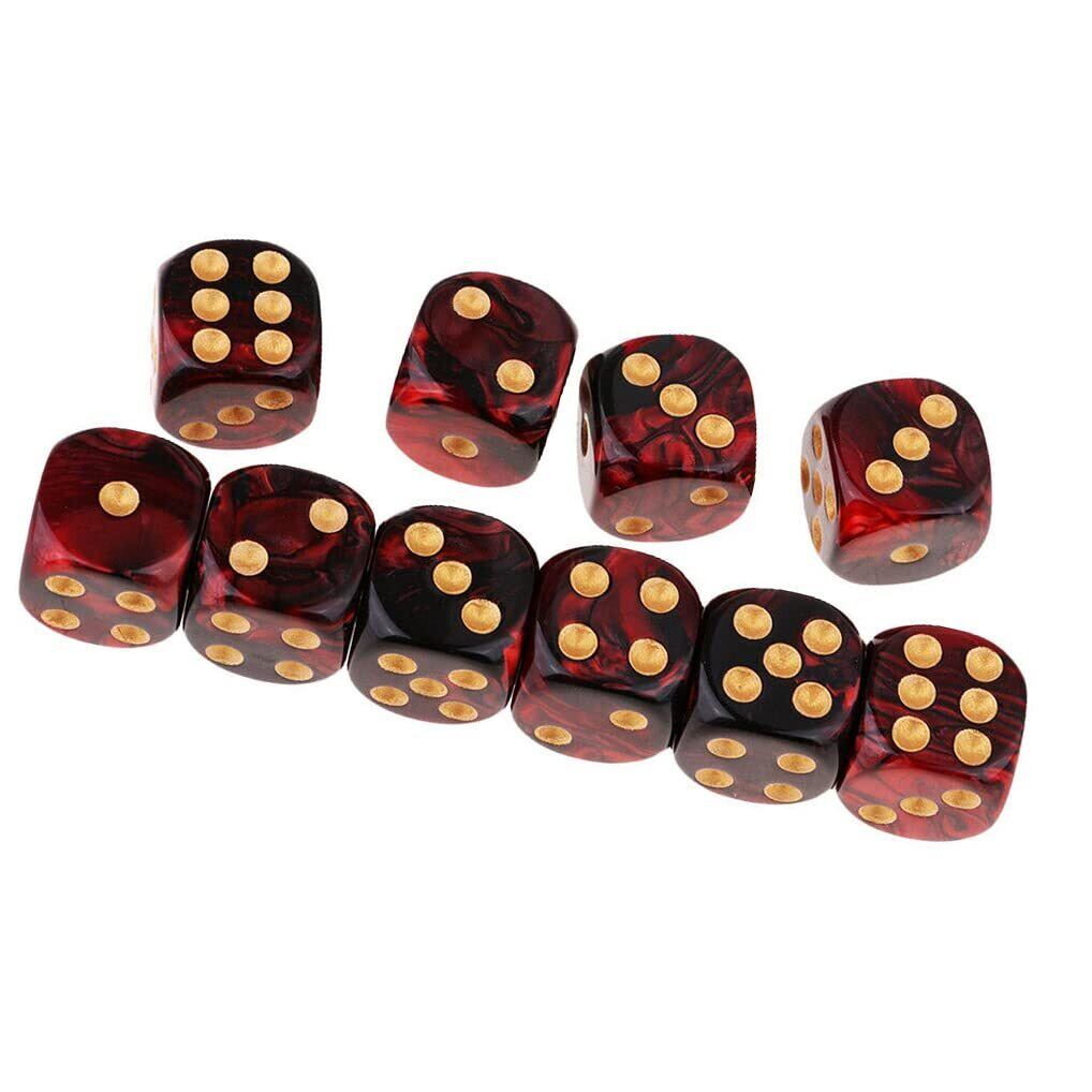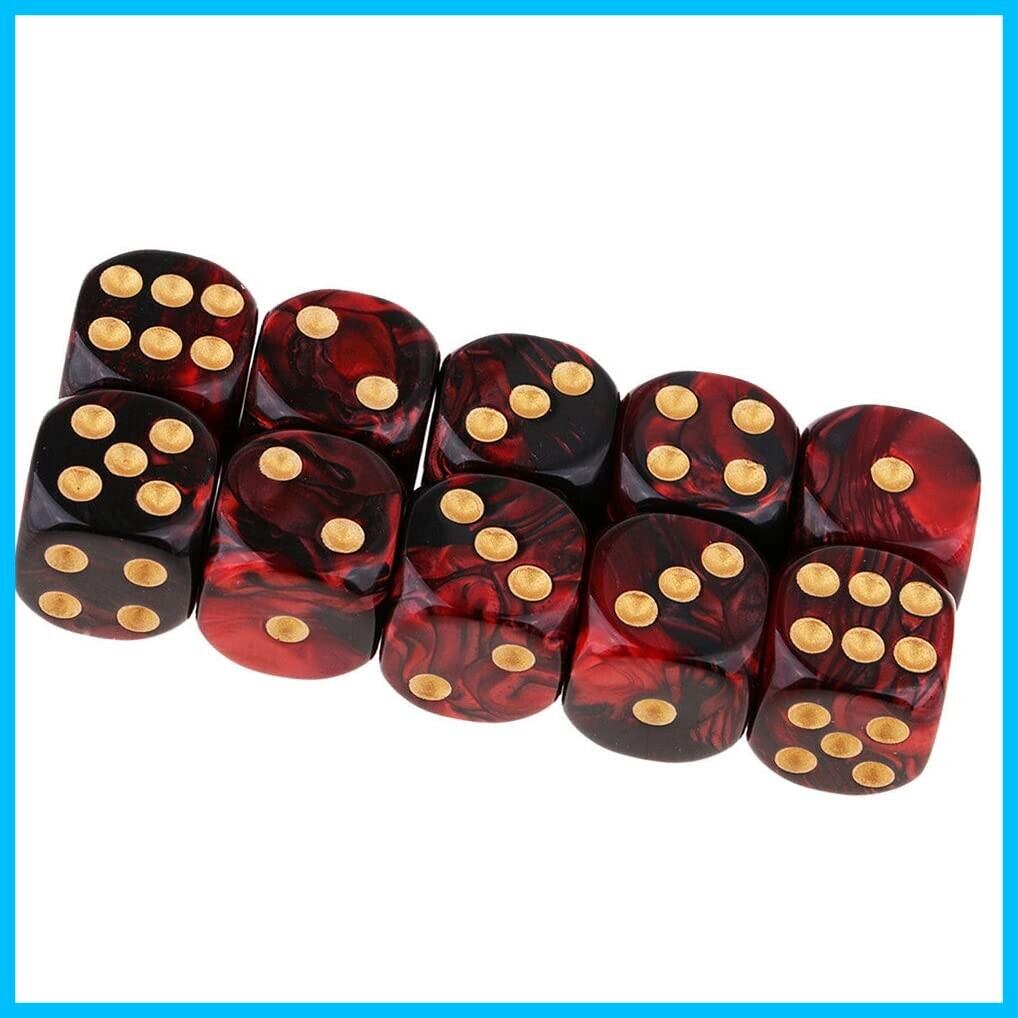 Yourandoll 10個 多面体ダイス D6サイコロ 6面ダイス16mm Dungeons and Dragons 、DND、 TRPG、 MTGなどテーブルゲーム用 (レッド ブラック)