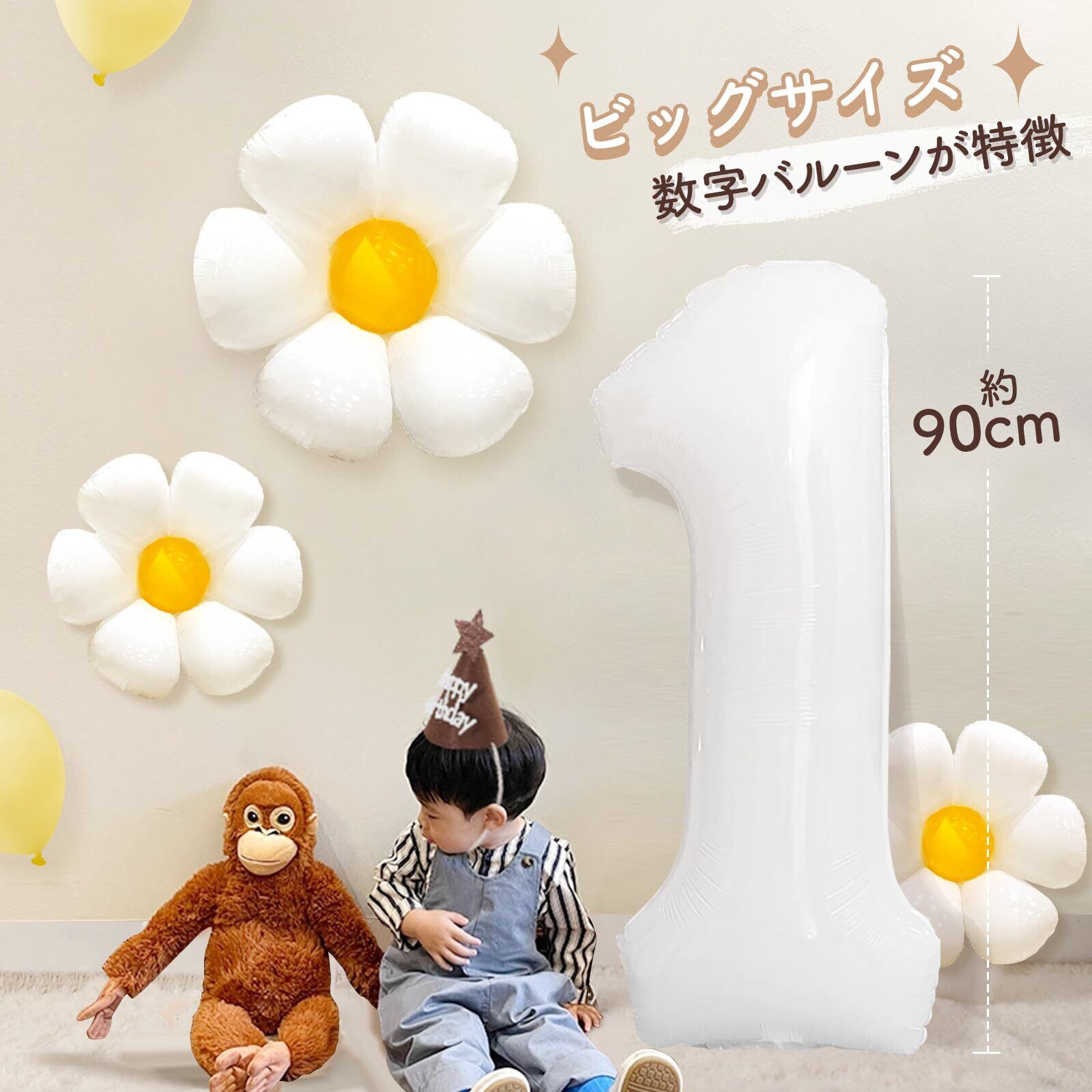 Iysoll 1歳 誕生日 飾り付け 90cm 大きい 数字 デイジー 風船 セット 一歳 誕生日 飾り バースデーバルーン ナンバーバルーン 1
