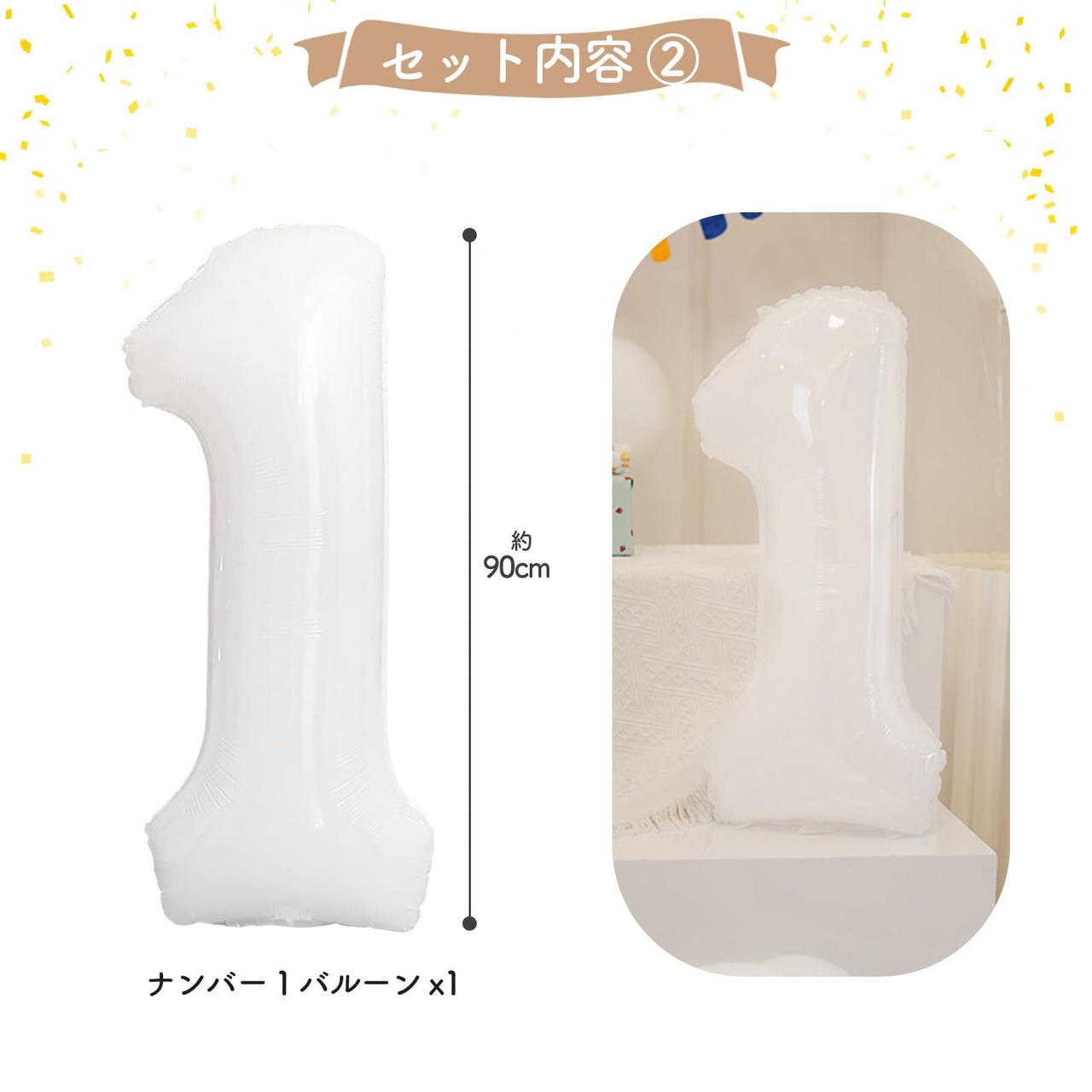 【セット内容】ナンバー1バルーン×1(高さ約90cm)、Lサイズのデイジー風船×1(105x99cm)、Mサイズのデイジー風船×1(72x62cm)、Sサイズのデイジー風船×2(36x36cm) ※ペタンコの状態でお届けです。