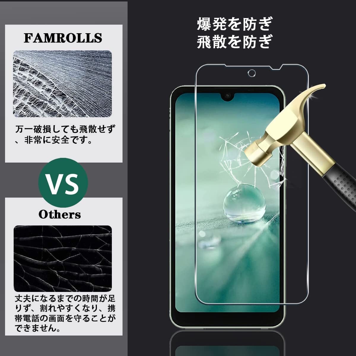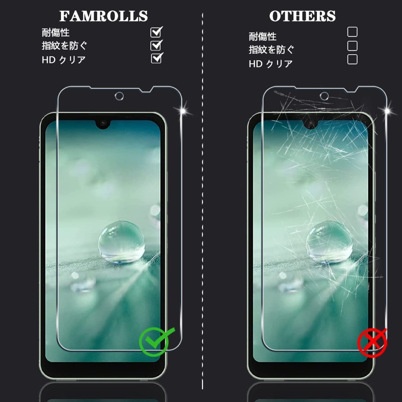 【対応機種】AQUOS wish2 SH-51C / AQUOS wish SHG06 A104SH / AQUOS Wish3 専用。素材に日本製の旭硝子を採用。【四枚セット】2枚 AQUOS wish SHG06 用 強化ガラスフィルム+ 2枚カメラ保護フィルム。【FAMROLLS正規品】スマホの周辺アクセサリーを長年手掛けるFAMROLLSメーカーの人気スマホガラスフィルムです。安心してご注文ください。