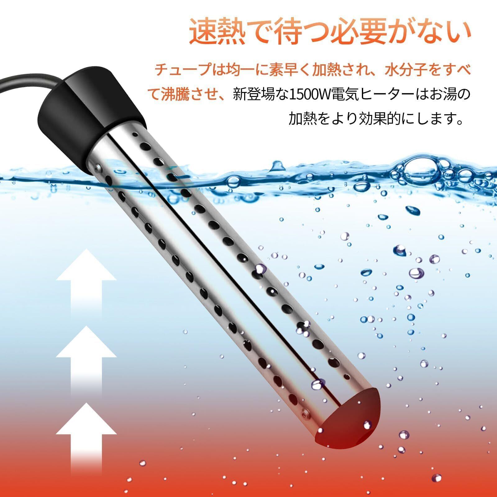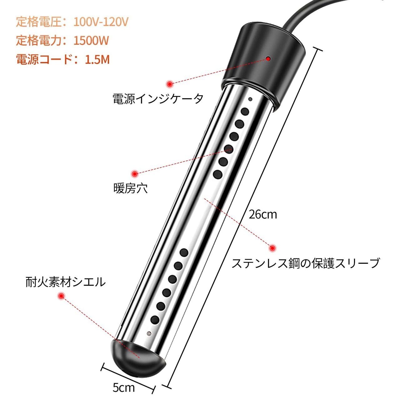 投げ込みヒーター 1500W 電気浸漬給湯器ロッド プールヒーター 自動電源オフ 浸漬湯沸かし器 インフレータブルプール 家庭 アウトドア 学校などに適用(日本語マニュアル付き)