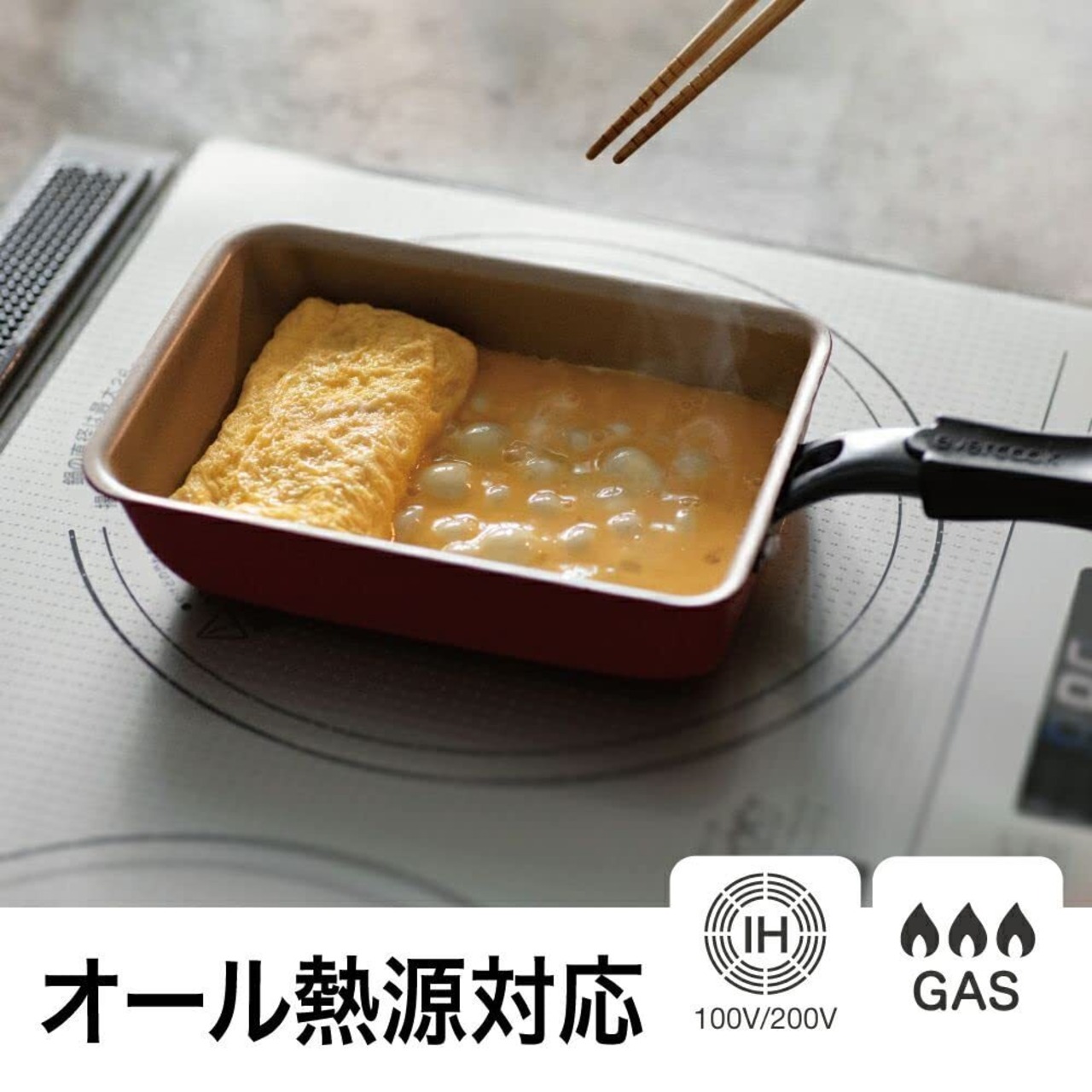 エバークック 卵焼き 13×18㎝ オール熱源対応(IH対応) こげつきにくいフライパン PFOA フリー レッド ドウシシャ
