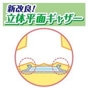 【改良された、 立体平面ギャザー】外折りの立体平面ギャザーが足まわりにフィット。寝返り時のすきまモレにも対応。