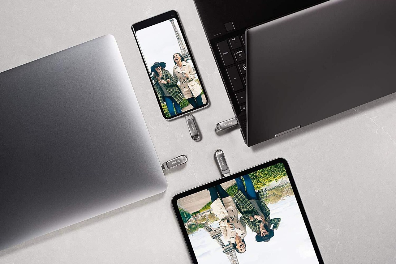 USB Type-Cスマートフォンのスペースを空け、SanDisk Memory Zoneアプリで写真を自動的にバックアップします。