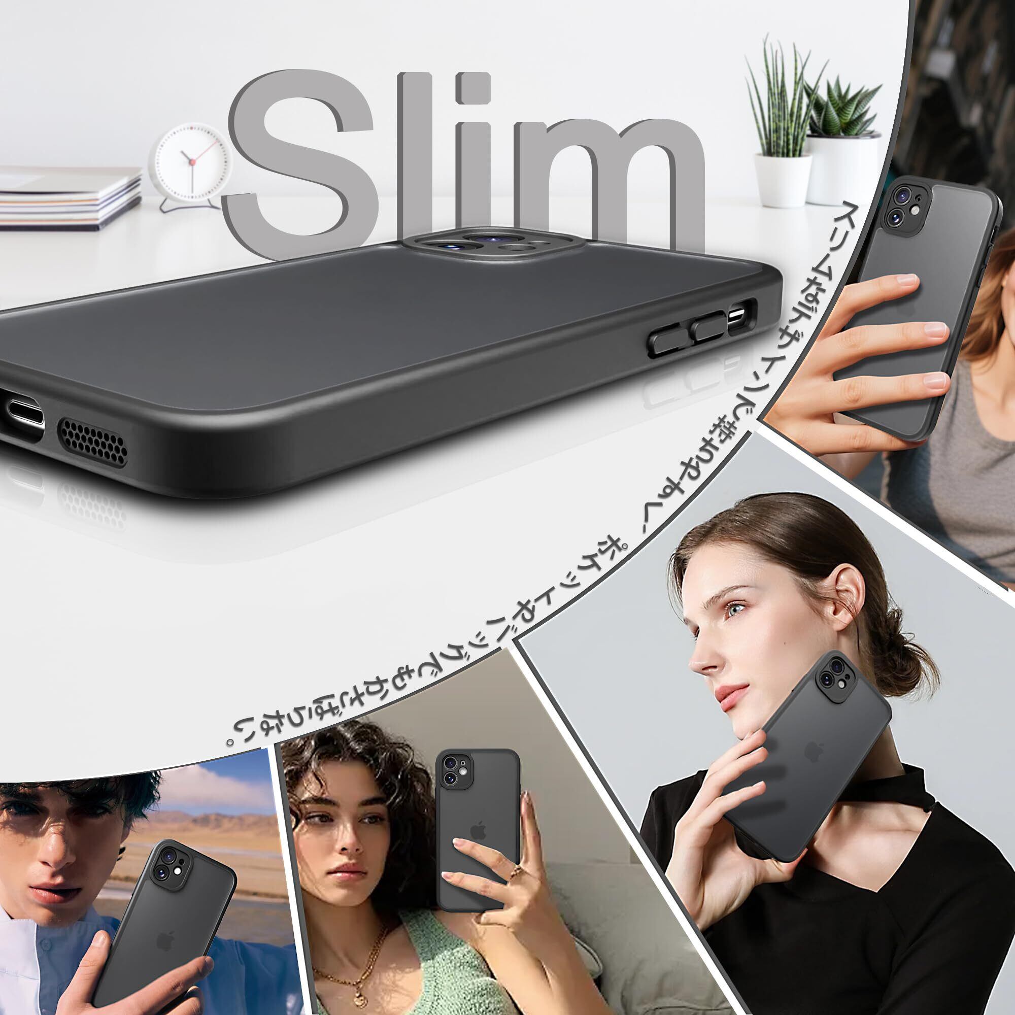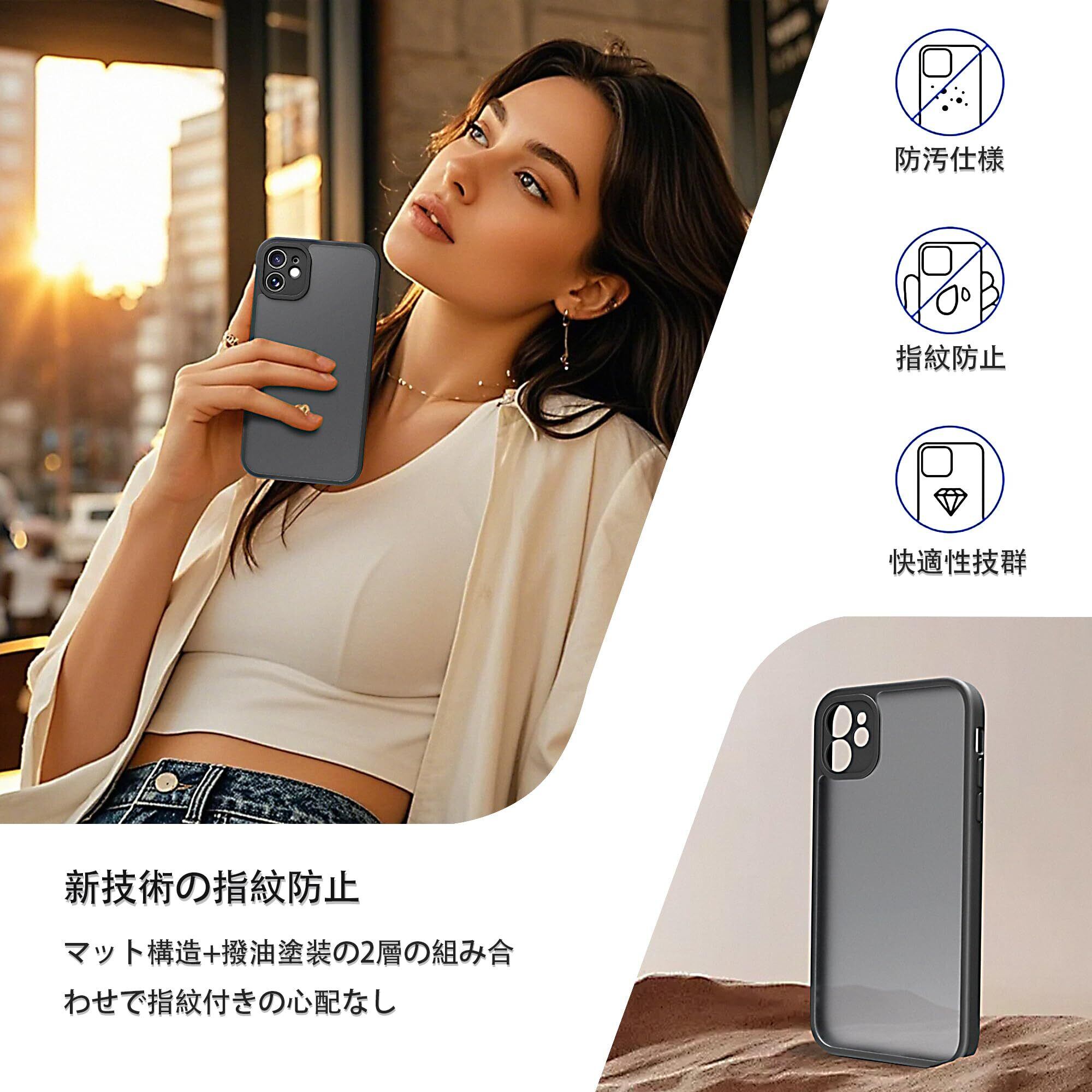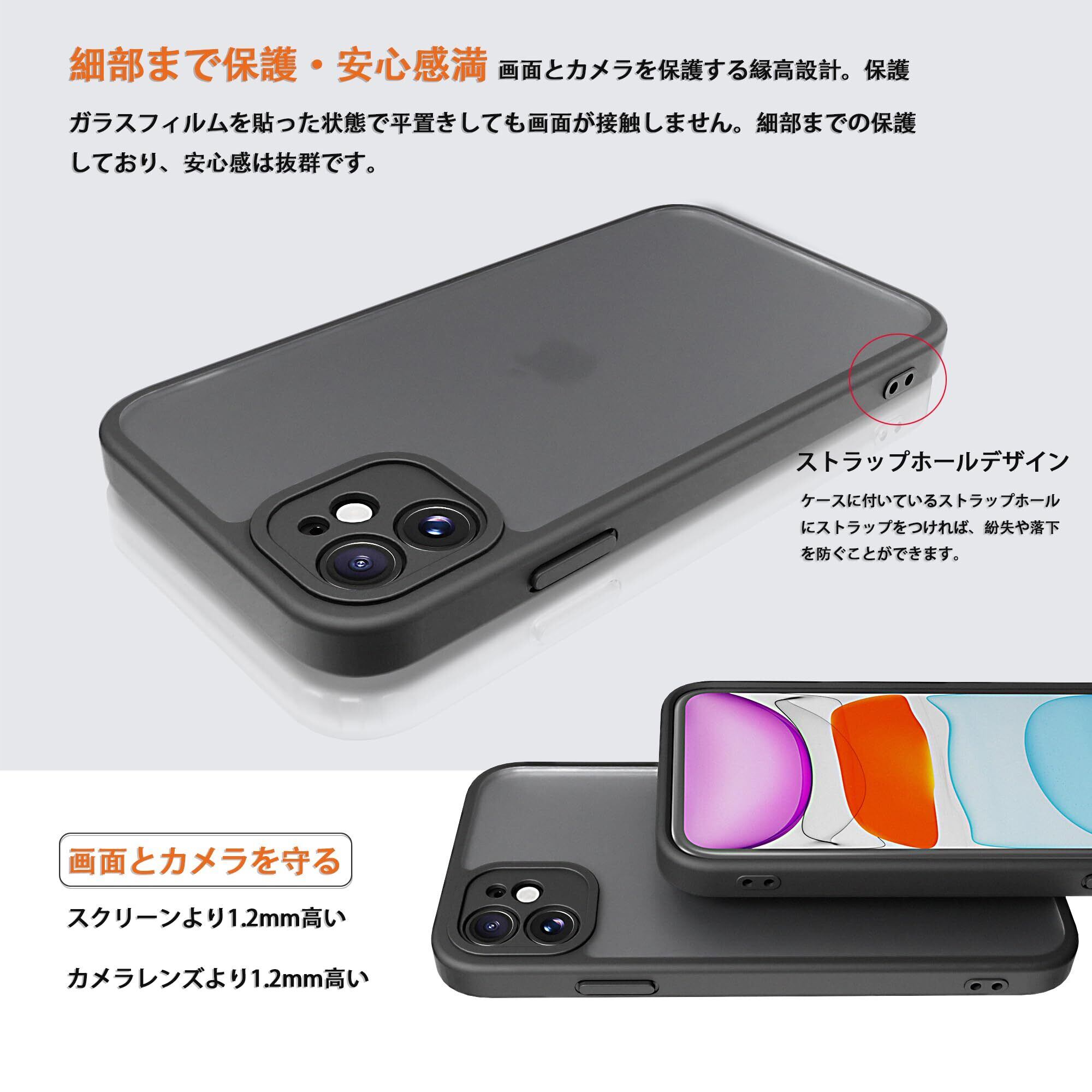 iphone 11 ケース iphone ケース iphone11 ケース スマホカバー 耐衝撃 指紋防止 滑り止め マット半透明 黄ばみなし レンズ保護 米軍MIL規格アイフォン11 用カバー 6.1インチ PinLiSheng (ブラック, iPhone 11)