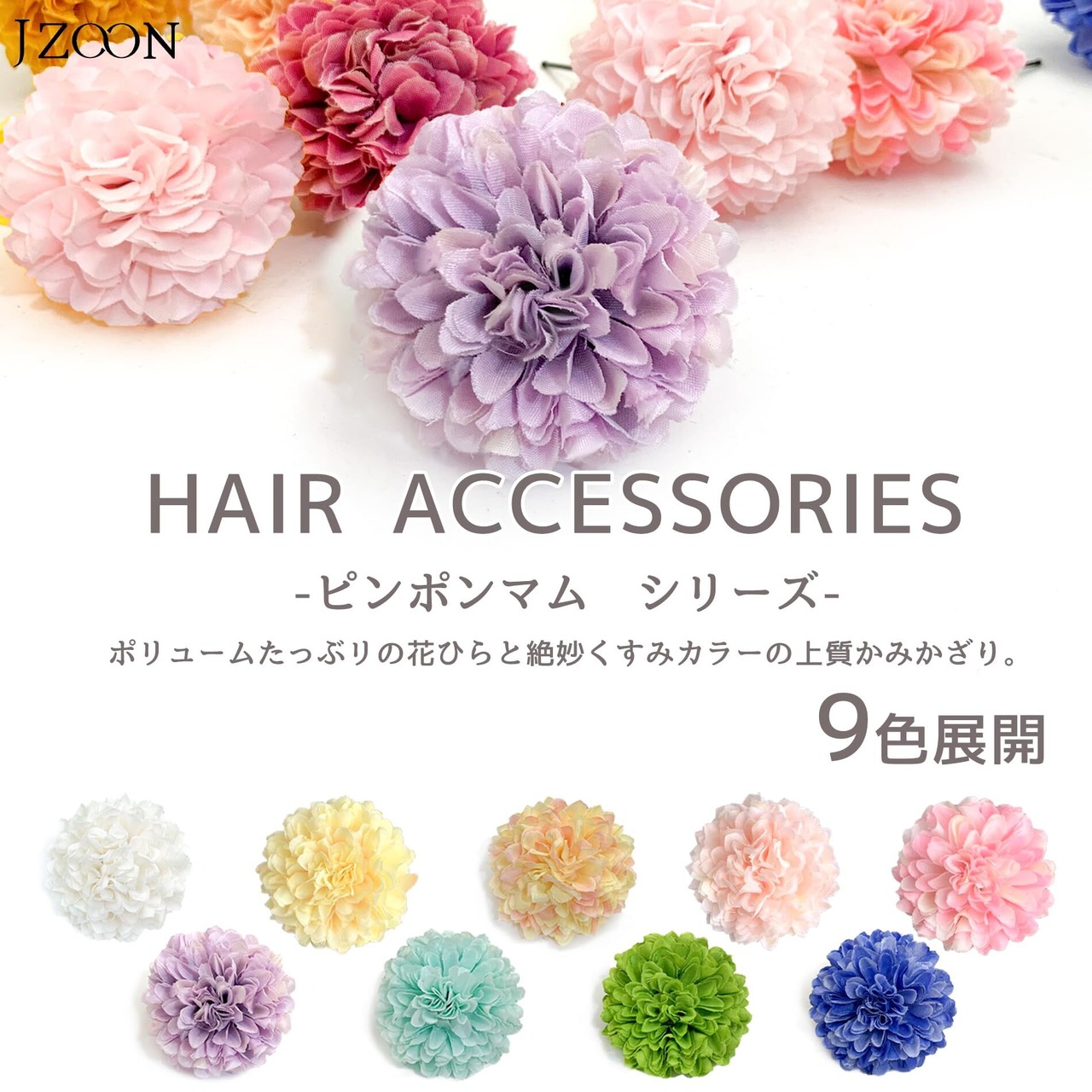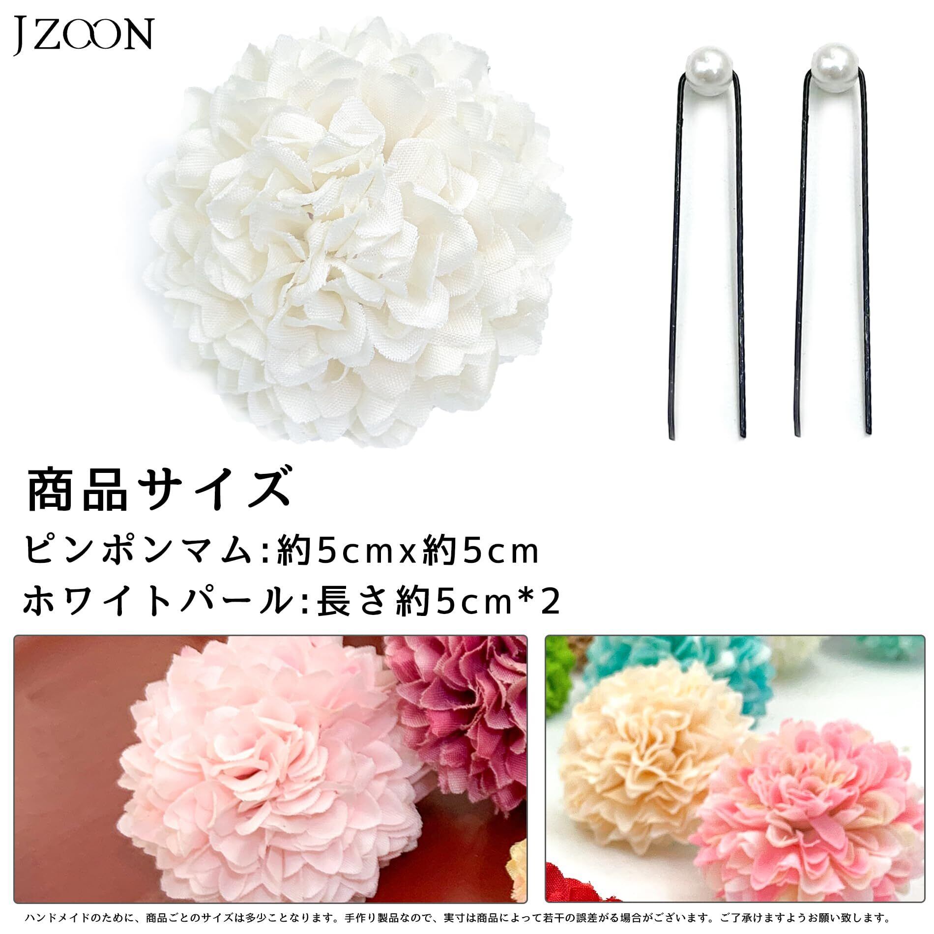 髪飾り 浴衣 成人式 振袖 袴 直径約5cm 花 赤 青 緑 白 黄 桃 紫 橙 水色 藤 ピンポンマム 普通サイズ 髪飾り Uピン カラフル 袴 夏祭り 花火大会 花飾り 白 PP001