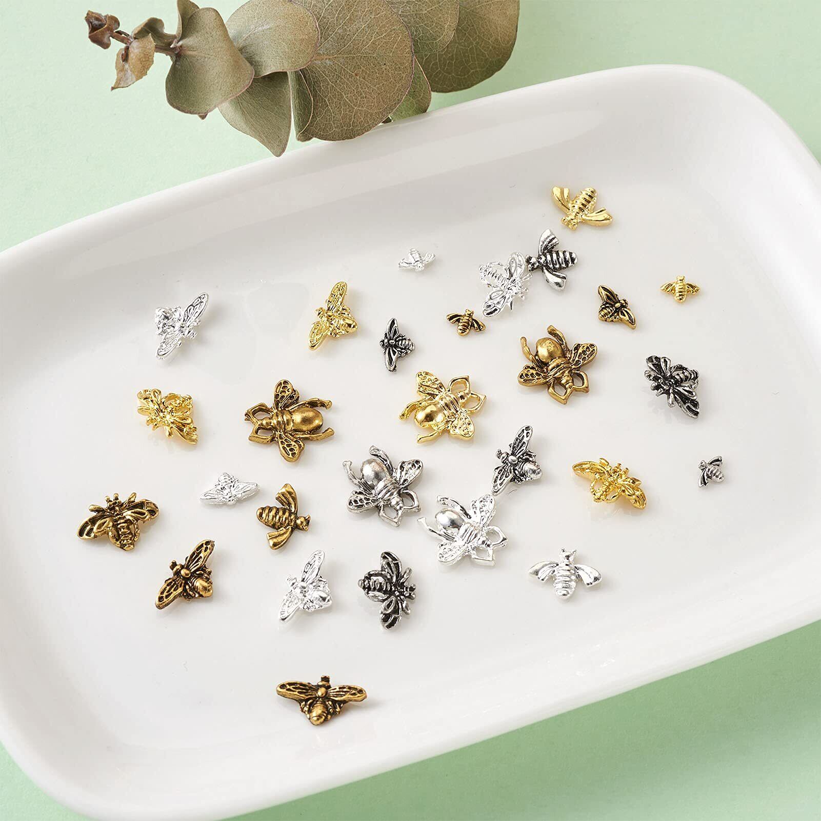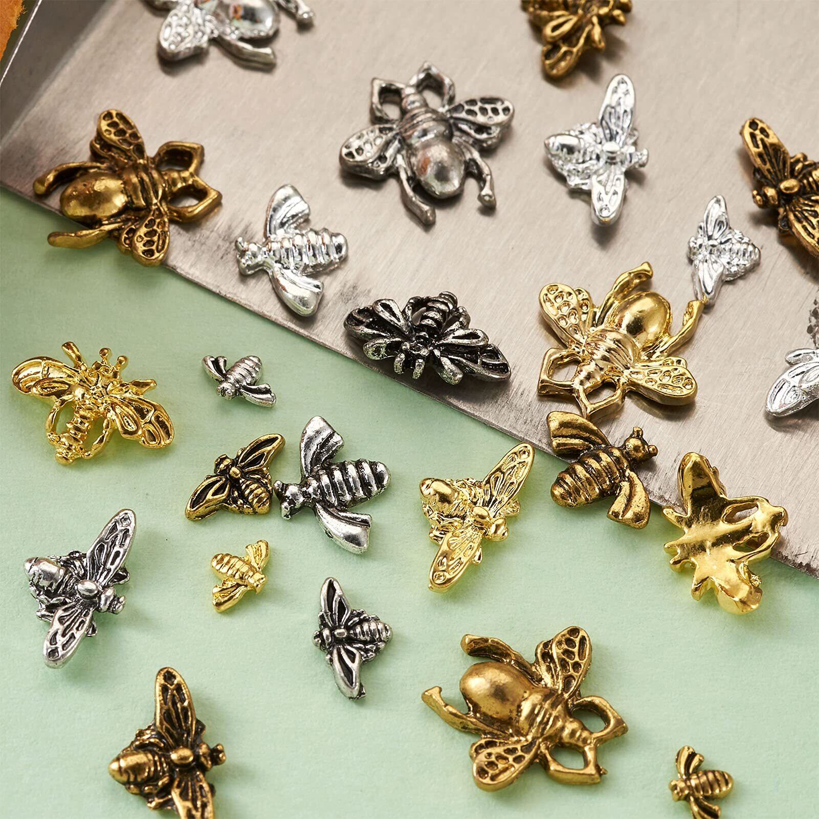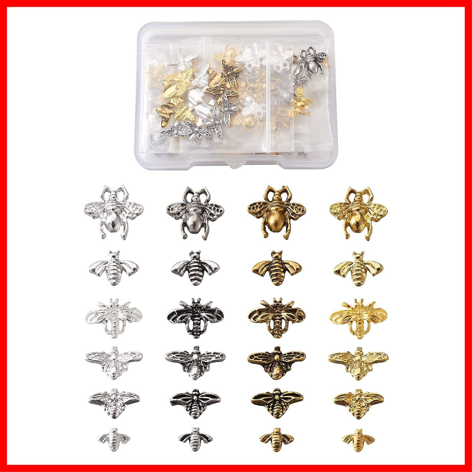Beadthoven レジンパーツ 封入材 メタルパーツ ミツバチ 約120個/箱 4色 蜂 合金カボション レジンクラフト デコパーツ ネイルパーツ チャームパーツ アクセサリー材料 DIY用品 手作り ネックレス ブレスレット ジュエリー作成 ハンドメイド用 手芸素材