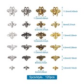 【仕様】:サイズ:6種類、約5-11.5mm。カラー:アンティークゴールド、アンティークシルバー、ゴールド、シルバー。数量:6種類・4色各5個、合計約120個/箱。