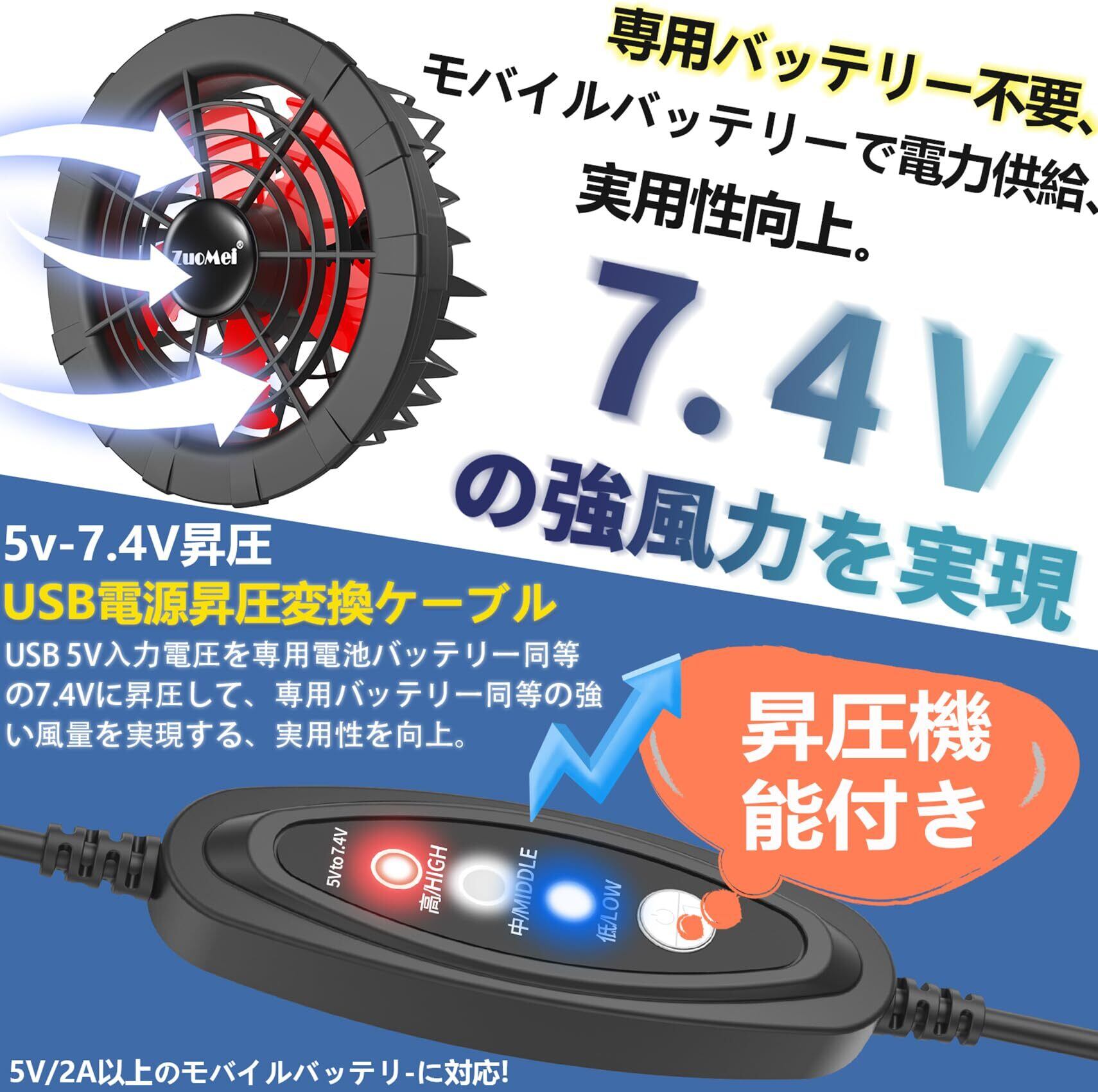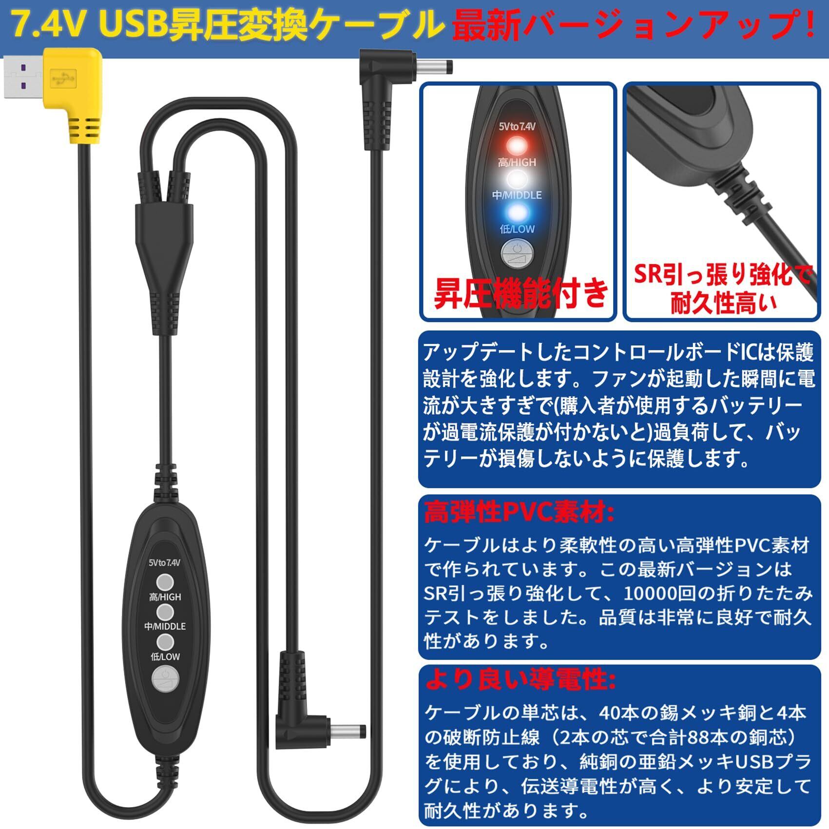 ZuoMei USB昇圧ケーブル 5V~7.4V昇圧 USB昇圧変換ケーブル 空調作業服変換ケーブル 冷却服ファン7.4V昇圧ケーブル SR強化で耐引抜き•保護アップ過負荷しない電池 長さ約97cm 12か月保証付き