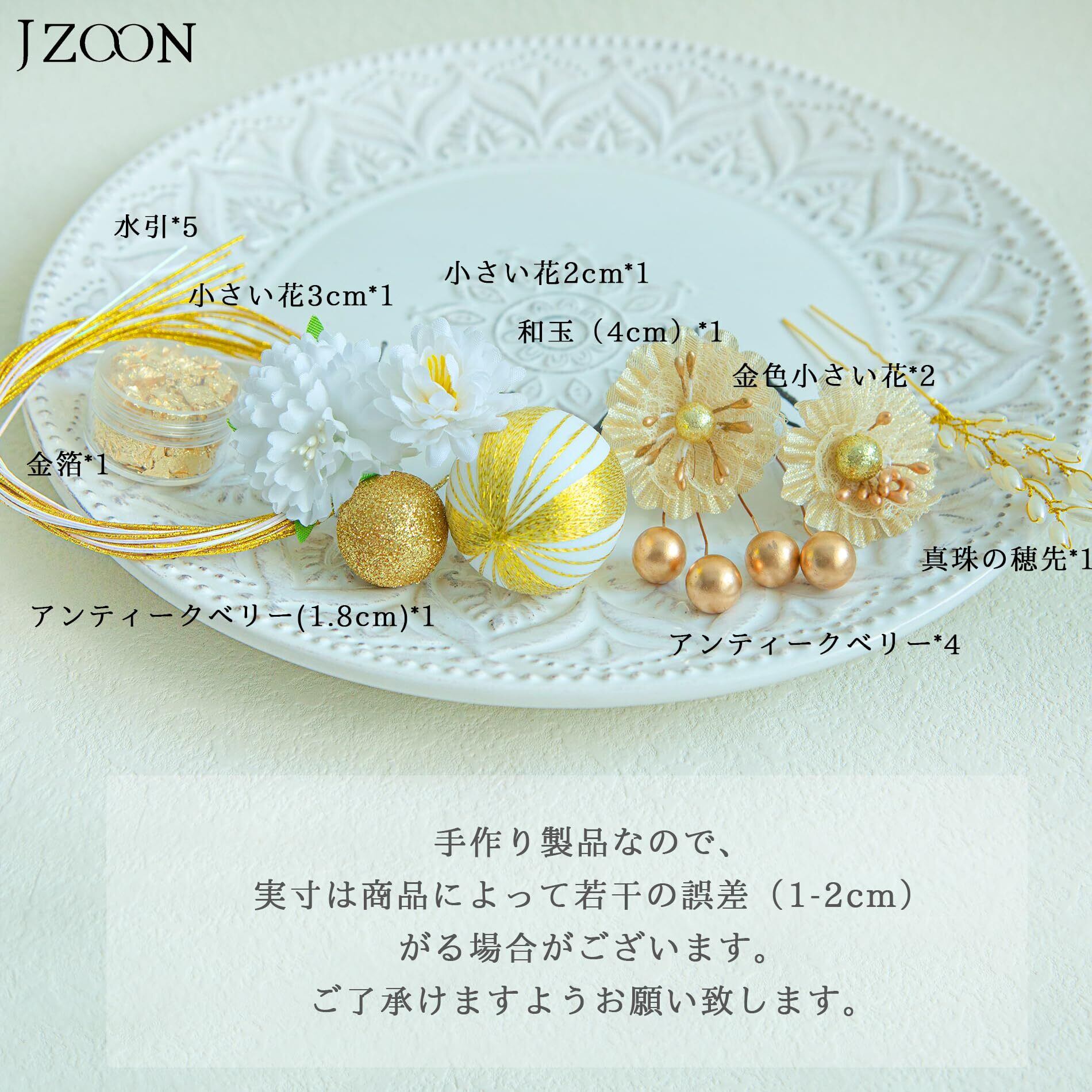 「飾りセット」 ゴールドの小花とホワイト小花、水引、和玉、アンティークベリー、金箔と真珠の穂先を組み合わせました。