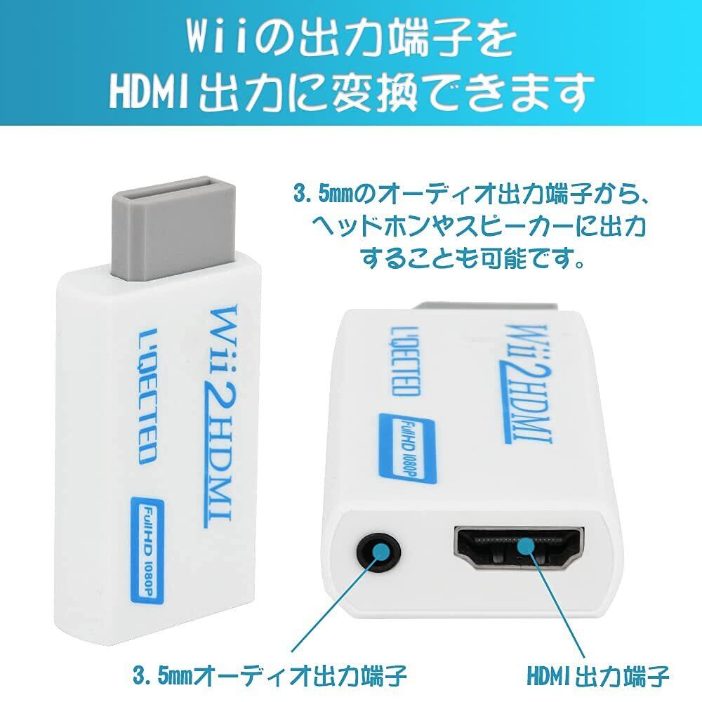 L'QECTED Wii to HDMI 変換アダプタ wii hdmi変換アダプター wii hdmi コンバーター480p/720p/1080pに変換 3.5mmオーディオ wii 2 hdmi コントローラー コンバーター wii hdmi ケーブル(HDMI接続でWiiを1080pに変換出力)